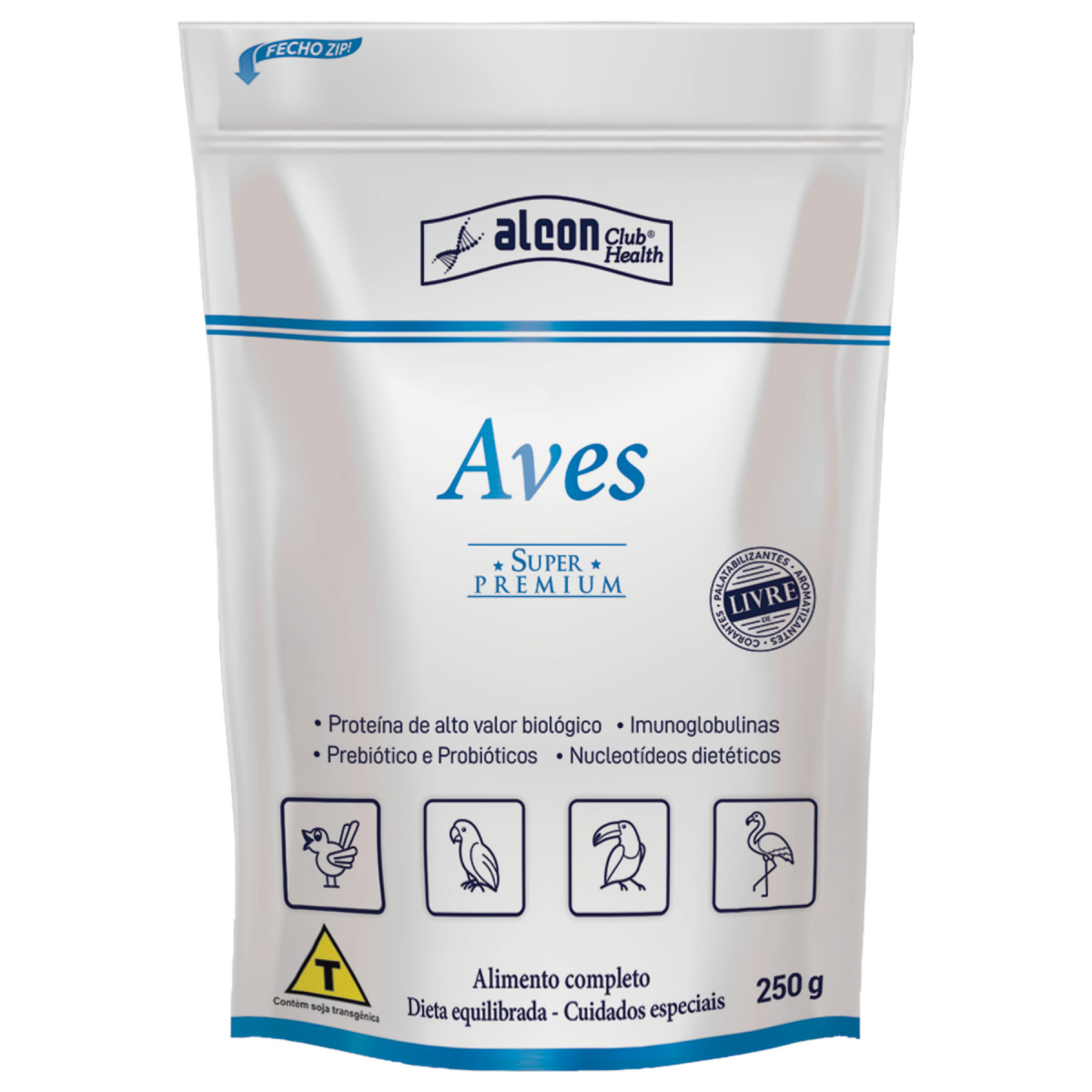Alcon Club Health Aves é um alimento completo Super Premium, cientificamente elaborado para suprir as necessidades nutricionais e energéticas de aves ornamentais com estado nutricional desajustado ou que apresentam necessidade de cuidados especiais por dificuldades de apreensão ou deglutição de alimento sólido. Muito recomendado para animais que necessitam recuperar o peso, já que fornece 3,8 kcal de energia metabolizável por grama de produto. Esse elevado nível energético ajuda a reduzir o volume necessário das refeições. Possui excelente diluição em água e pode ser utilizado para alimentação voluntária ou em nutrição enteral (via sondas). É um alimento com excelente digestibilidade e palatabilidade que foi desenvolvido para incentivar a aceitação por aves com apetite reduzido. Composto por ingredientes de alto valor biológico como plasma sanguíneo (fonte de imunoglobulinas), proteína hidrolisada de fígado de frango, ovo integral, spirulina, beterraba, cenoura, maçã, prebiótico, probióticos e nucleotídeos dietéticos, proporciona diversos benefícios nutricionais e melhora o bem-estar dos animais.