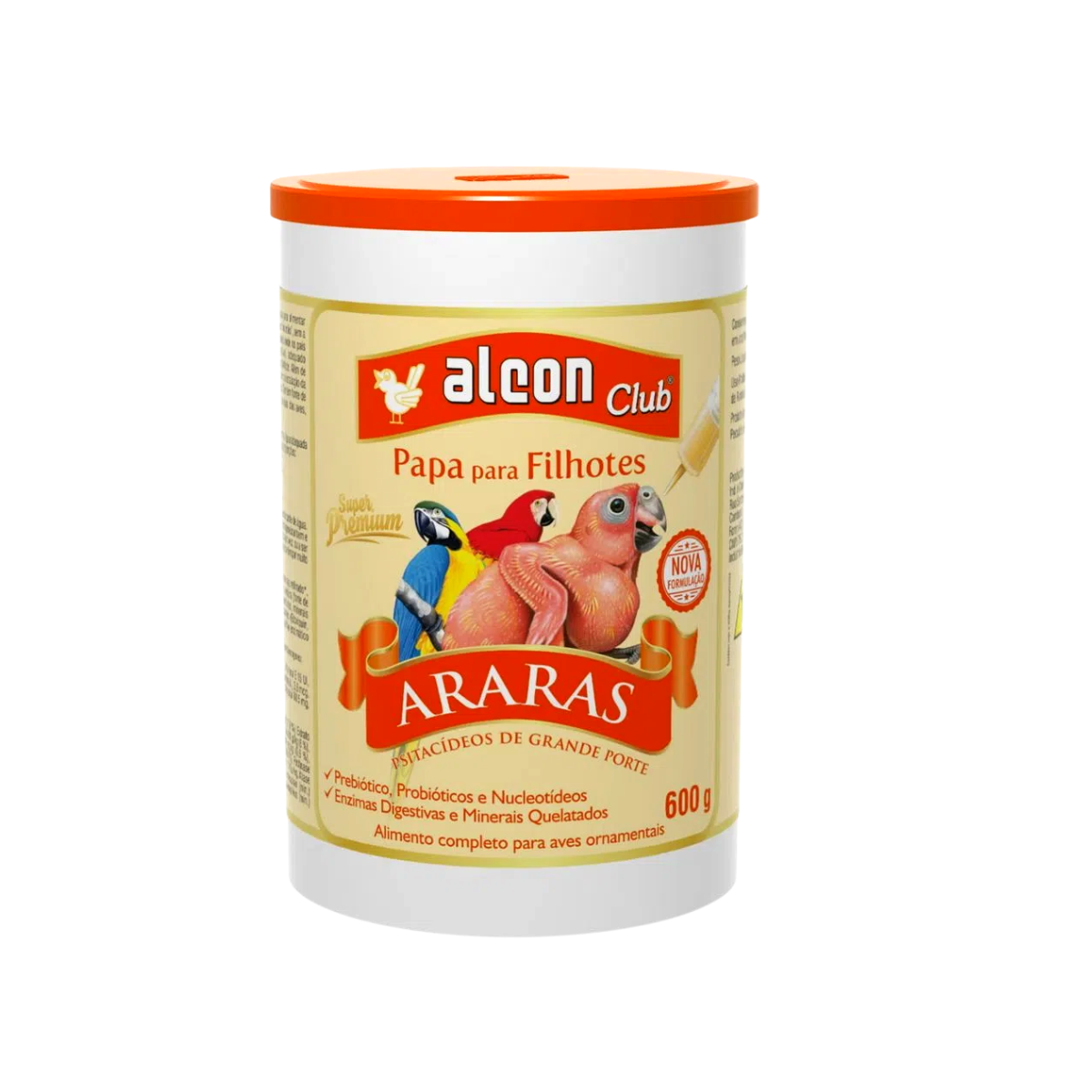 Alcon Club Papa para Filhotes Araras Super Premium foi especialmente desenvolvido para alimentar filhotes de Araras e outros Psitacídeos de grande porte. Indicado para a criação de filhotes “na mão”, sem a participação dos pais, bem como para a suplementação de pais e filhotes em sistemas onde os pais participam da criação. Altamente nutritivo e completo, contém enzimas digestivas, adequado balanceamento de nutrientes e uniformidade na textura, o que confere excelente digestibilidade. Além de vitaminas e minerais, o alimento é enriquecido com Prebiótico e Probióticos que favorecem a instalação da flora intestinal benéfica aos filhotes, responsável pela melhoria na absorção de nutrientes. Contém fonte de Nucleotídeos, que aceleram o desenvolvimento do trato gastrointestinal e glândulas anexas das aves, antecipando a capacidade ideal de aproveitamento dos alimentos.