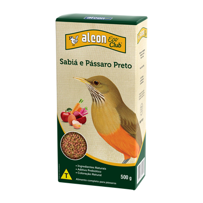 Alcon Eco Club Sabiá e Pássaro Preto é um alimento extrusado completo para esses pássaros frugívoros. Apresenta uniformidade nutricional em cada grânulo, a partir de ingredientes naturais como maçã, ovo, beterraba e cenoura. Contém aditivo Prebiótico, que favorece o desenvolvimento da flora intestinal benéfica, melhorando o aproveitamento dos nutrientes. Não são usados corantes artificiais. Forma de uso: Servir em comedouros limpos e secos. Pode ser oferecido como dieta única ou complementado com frutas, desde que essas não excedam 20 % da dieta. Deixar água limpa sempre à disposição. Composição básica: Creme de milho*, farelo de soja*, fibra vegetal, óleo de soja refinado*, maçã desidratada (1,48 %), carbonato de cálcio, leveduras, ovo integral desidratado (0,75 %), proteína texturizada de soja*, premix vitamínico mineral, premix mineral, aditivo prebiótico (0,2 %), corantes naturais (urucum, cochonilha) (0,15 %), cenoura desidratada (0,1 %), beterraba desidratada (0,1 %), aditivo aromatizante (aroma de banana), antioxidantes (Etoxiquin, Propilgalato, ácido cítrico, BHA, BHT). *Espécies doadoras de gene: Agrobacterium tumefaciens, Bacillus thuringiensis, Streptomyces viridochromogenes. Enriquecimento por kg de produto: Vitamina A (9.000 UI); Vitamina D3 (1.500 UI); Vitamina E (25 UI); Vitamina K3 (2,5 mg); Vitamina C (75 mg); Vitamina B1 (2 mg); Vitamina B2 (7,5 mg); Vitamina B6 (2 mg); Vitamina B12 (10 mcg); Niacina (35 mg); Pantotenato de cálcio (15 mg); Biotina (0,1 mg); Ácido fólico (0,75 mg); Colina (156 mg); Ferro (25 mg); Cobre (2,5 mg); Zinco (25 mg); Manganês (20 mg); Selênio (0,07 mg); Iodo (0,5 mg); Metionina (250 mg) Níveis de Garantia: Umidade (máx.)......................................100 g/kg (10 %) Proteína bruta (mín.)...............................200 g/kg (20 %) Extrato etéreo (mín.)...............................40 g/kg (4 %) Matéria fibrosa (máx.).............................60 g/kg (6 %) Matéria mineral (máx.)............................50 g/kg (5 %) Cálcio (máx.).........................................10 g/kg (1 %) Cálcio (mín.)..........................................6.000 mg/kg (0,6 %) Fósforo (mín.)........................................4.000 mg/kg (0,4 %) Mananoligossacarídeo (mín.)....................240 mg/kg (0,024 %) Ferro (máx.)..........................................120 ppm Ferro (mín.)...........................................70 ppm Energia Metabolizável..............................3.550 kcal/kg |