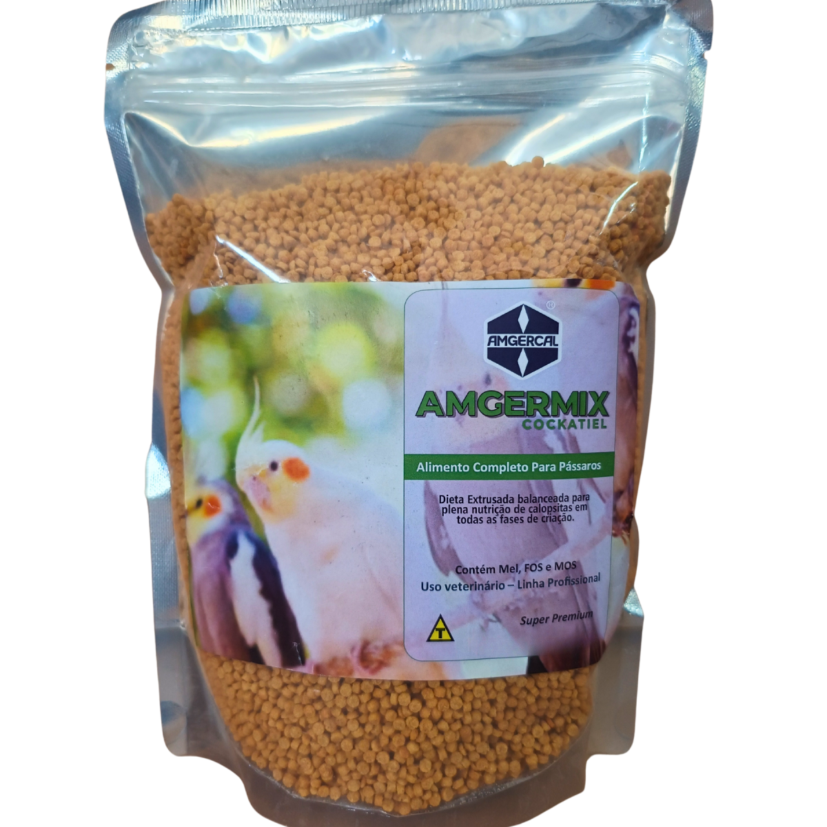 Amgermix Cockatiel 5 kg - é o alimento extrusado especialmente formulado para atender as necessidades das calopsitas, evitando estresse e propiciando o bem-estar. |