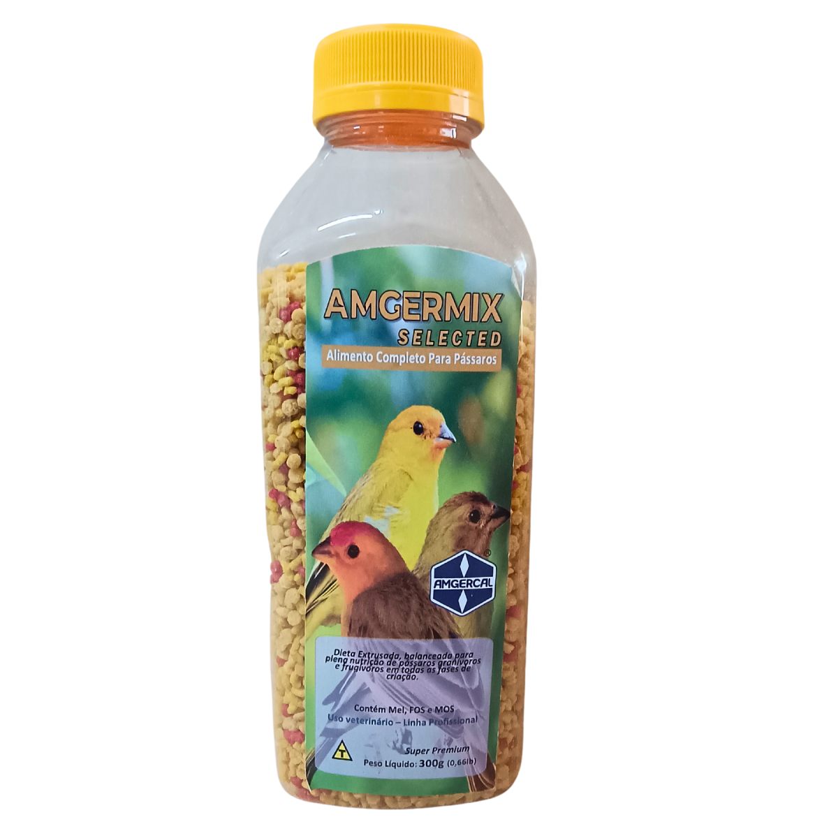 AMGERMIX SELECTED - AMGERCAL - 300 g - Mais nova linha de alimentos amgermix, foi especialmente formulada para atender as necessidades dos pássaros canoros ? silvestres e exóticos ? bem como de cor, evitando estresse e propiciando o Bem Estar Animal.indicação do produto: Indicado como alimento único, ou complemento dietético para pássaros granívoros de pequeno porte. Atende as precisões dietéticas diárias dos pássaros em fase de cria e recria, podendo ser usada mesmo como única fonte de alimento. é melhor utilizada como complemento alimentar, a fim de reduzir o estresse pela falta de predação, servindo para a distração das aves. é indicada, também para aquelas aves que rejeitam rações ou formulações especialmente balanceadas.composição básica: Milho¹, Levedura de Cana, Soja Integral Extrusada², Farelo de Soja², Óleo de Soja Refinado, Sal Comum (Cloreto de Sódio), Aromatizante, Probiótico, Fosfato Bicálcico, Calcário Calcítico, mel (1,5%), aluminossilicatos de sódio e cálcio (0,2%), Frutooligossacarídeos (0,02%), Mananoligossacarídeo (0,04%), DL-Metionina, L-Lisina, Cloreto de Colina, Sulfato de Cobre, Óxido de Manganês, Iodato de Cálcio, Selenito de Sódio, Óxido de Zinco, Cromo Quelatado, Selênio Quelatado, Zinco Quelatado, Vitamina a, Vitamina e, Vitamina D3, Vitamina K3, Vitamina B1, Vitamina B2, Vitamina B6, Vitamina B12, Niacina, Ácido Fólico, Biotina, Pantotenato de Cálcio, Vitamina c, Bióxido de Silício, bht/bha, Saccharomyces cerevisiae - 18x105 UFC/Kg) ? o. G. M.: ¹Bacillus thuringiensis, Streptomyces viridochromogenes, Agrobacterium tumefaciens ²B. thuringiensis, s. viridochromogenes, a. tumefaciens, Arabidopsis thalia.modo de usar: Deve ser servida pura em dispenser ou tratadouro separado, para garantir a liberdade dietética para a ave. Usar comedouro próprio, que deve ser trocado e lavado diariamente.CONSERVAÇÃO: Manter a embalagem bem fechada em local fresco e seco, longe da luz solar direta. |