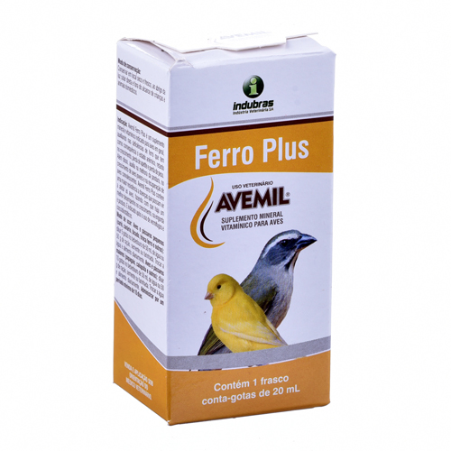 Avemil Ferro Plus é um suplemento mineral vitamínico indicado para aves em geral, auxiliando nas deficiências de ferro que tem como consequência o estado anêmico, retardo no crescimento, perda de apetite e perda de peso. Além disso, auxilia na melhora da postura, no crescimento de aves jovens e na recuperação de aves convalescentes. Avemil Ferro Plus confere uma maior resistência a doenças que possam vir a afetar as aves, fazendo com que haja um melhor desempenho no crescimento, na engorda e postura. É indicado após o uso dos vermífugos e coccidiostáticos. Modo de usar: Aves e pássaros pequenos (curió, canário, bicudo, trinca ferro e outros) Diluir 5 gotas no bebedouro de 50ml de água ou 50g de ração, semente ou farinhada. Trocar á água e alimento diariamente. Aves e pássaros maiores (papagaio, calopsita e outros) Diluir 10 gotas no bebedouro de 50ml de água ou 50g de ração, semente ou farinhada. Trocar a água e alimento diariamente. Administrar por um período mínimo de 10 dias.