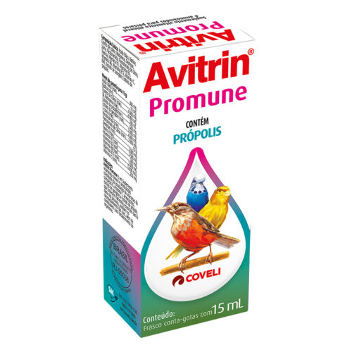 INDICAÇÕES Avitrin Promune é um Suplemento vitamínico mineral e aminoácidos constituído da associação de vitaminas do complexo B, vitamina C, aminoácidos, extrato de gengibre e extrato de própolis, que fornecem nutrientes essenciais para a dieta dos pássaros, auxiliam no desenvolvimento das crias, além de contribuírem para fortalecimento do organismo.