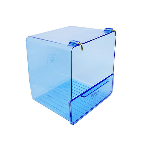 Banheira Externa Transparente Medidas: Comp. 13,5cm x Larg. 11,5cm x Alt. 14cm Permite que o pássaro tome banho sem que ele molhe o interior da gaiola e/ou os alimentos próximos à banheira. Para uso em gaiolas de arame, com fixação na janela da gaiola. |