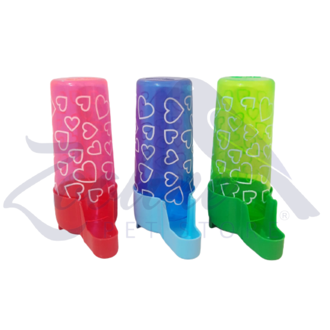 Bebedouro plástico próprio para gaiolas de malha larga.