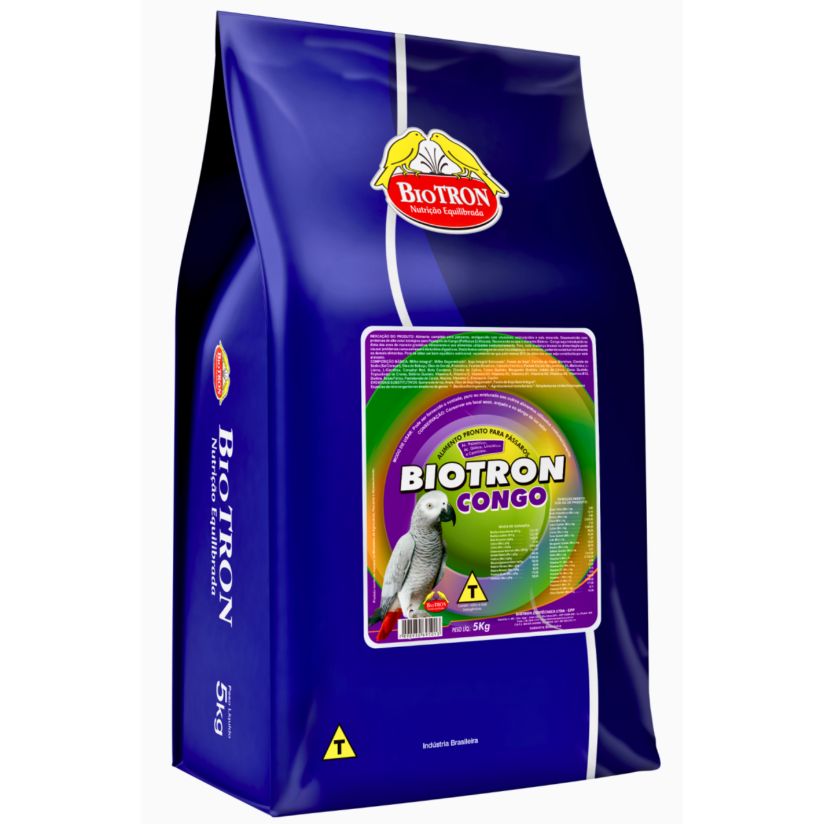 Sua fórmula exclusiva Biotron® é composta por milhos integral e degerminado, derivados de soja, farinha de algas marinhas, óleo de babaçu e óleo de dendê, e enriquecida com aminoácidos, vitaminas e minerais, que quando combinados oferecem às aves todos os nutrientes necessários para uma alimentação saudável e equilibrada.