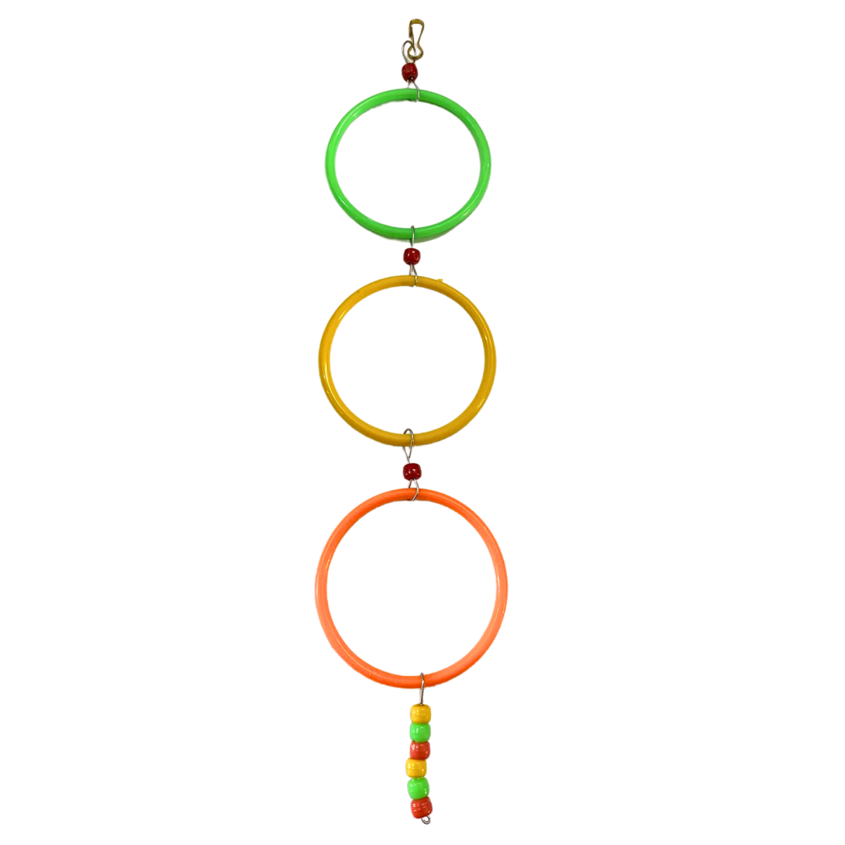 Brinquedo argola tripla descorada para pássaros. Se seu animal estiver muito estressado? Esse brinquedo é a solução para o temperamento dele. Comprimento: 47 cm |