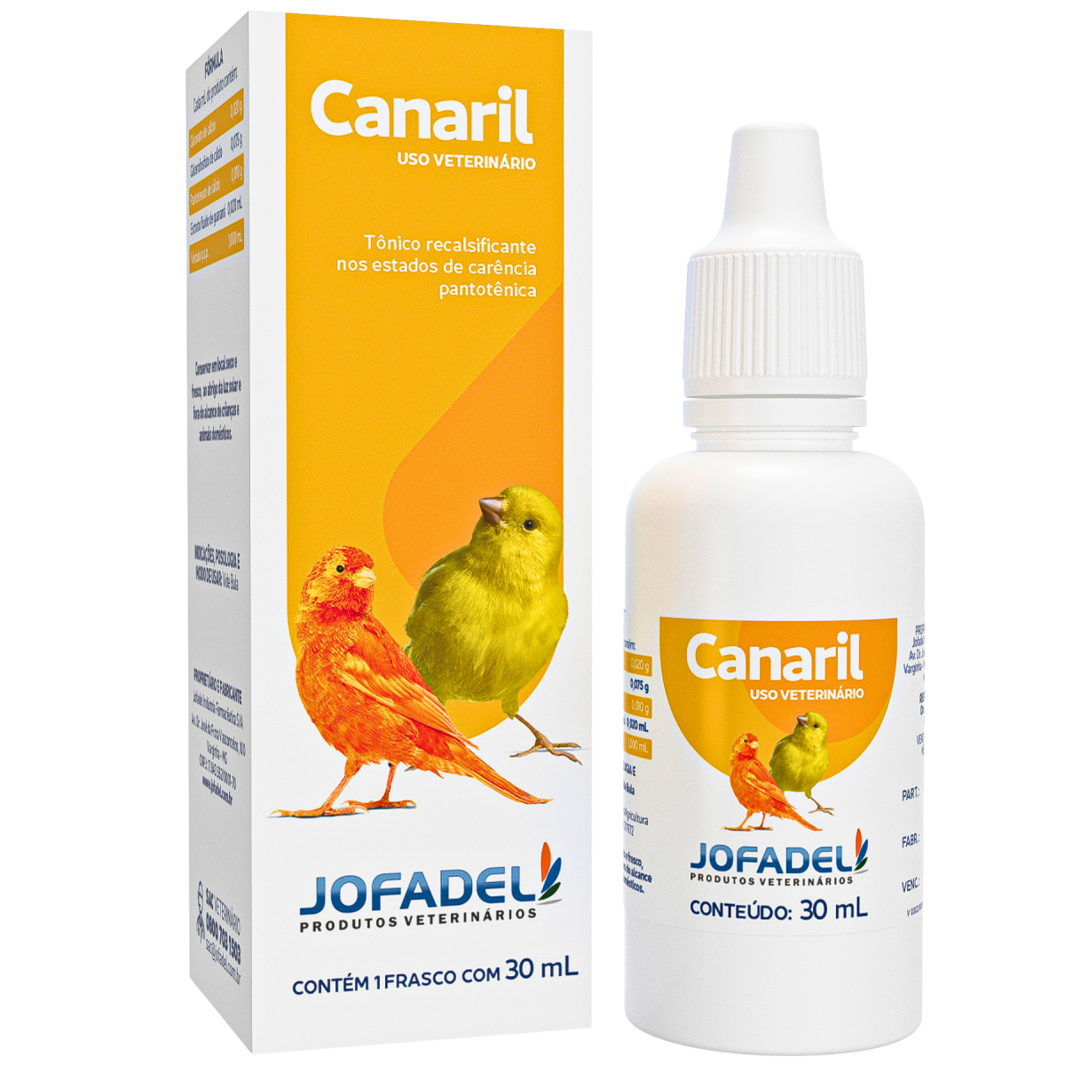 Tônico recalcificante nos estados de carência pantotênica CANARIL é uma associação de elementos destinados a tonificar os pássaros ornamentais, melhorando sua plumagem em poucos dias. CANARIL é de grande utilidade aos pássaros na época da muda; a nova plumagem nasce farta e mais bonita.