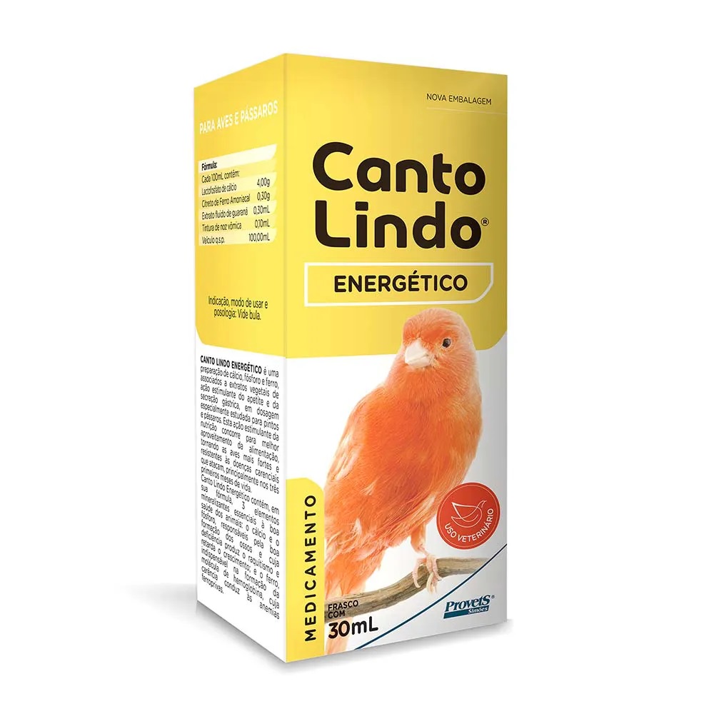 Cantolindo Energético é um estimulante tônico e energético, mineralizante, indicado no período de crescimento de pintos e pássaros. Canto lindo Energético é uma preparação de cálcio, fósforo e ferro, associados a extratos vegetis de ação estimulante do apetite e da secreção gástrica, em dosagens especialmente estudade para pintos e pássaros. Esta ação estimulante da nutrição concorre para melhor aproveitamento da alimentação, tornando as aves mais fortes e resistentes às doenças carenciais que atacam, principalmente nos três primeiros meses de vida. Cantolindo Energético contém, em sua fórmula, 3 elementos mineralizantes essenciais à boa saúde dos animais: o cálcio e o fósforo, responsáveis pela boa formação dos ossos e cuja deficiência produz o raquitismo e retarda o crescimento; e o ferro, indispensável na formação da molécula de hemoglobina, cuja carência conduz às anemias ferroprivas. MODO DE USAR E POSOLOGIA: Diluir uma colher das de sopa (15mL) em um litro de água. Tratamento individual: Diluir 12 gotas em um bebedouro com cerca de 40 mL de água. Tratamento coletivo: Diluir 15mL em um litro de água. Deve-se mudar a água diariamente, afim de fornecer uma medicação sempre fresca. FÓRMULA: Cada 100 mL contém: Lactofosfato de cálcio 4,00 g Citrato de ferro amoniacal 0,30g Extrato fluido de guaraná 0,30mL Tintura de noz vômica 0,10 mL Veículo q.s.p. 100,00 mL ATENÇÃO: Antes de utilizar qualquer medicamento veterinário sempre leia as instruções que acompanham o produto (bula ou rótulo). Informações sujeitas a divergências entre rótulo ou bula e este contéudo. Caso haja diferença entre as informações aqui apresentadas e rótulo ou bula, prevalecerá sempre a informação do rótulo ou bula que acompanha o produto. Sempre leia a bula antes de utilizá-lo. Consulte sempre um médico veterinário! |