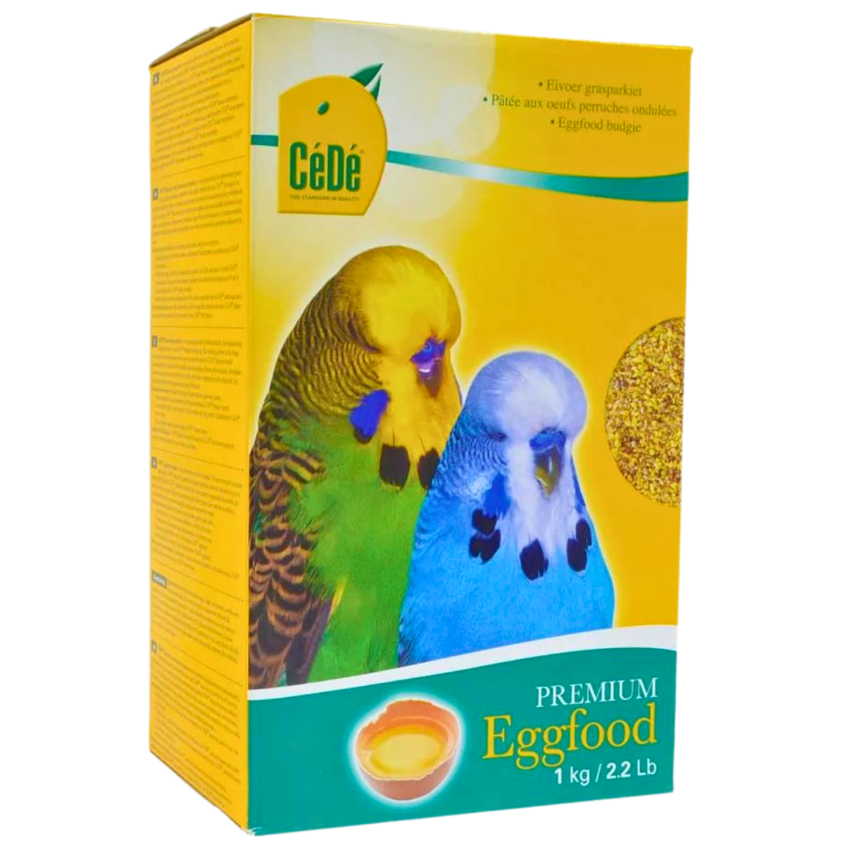 O alimento de ovo CéDé para periquitos australianos é, como o nome indica, um alimento completo para periquitos australianos. O processamento dos ovos inteiros torna a CéDé única! A proteína do ovo é facilmente digerida e uma ótima fonte utilizável de proteínas para pássaros. O alimento de ovo CéDé contém um elevado grau de proteínas, animais e vegetais, todas as vitaminas, aminoácidos, minerais e oligoelementos necessários para a reprodução com sucesso. A adição de aminoácidos essenciais desenvolve a muda da pena.