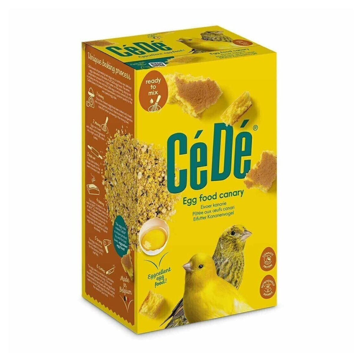 O Eggfood Canaries CéDé é um alimento completo para canários coloridos, de canto e de postura. O processamento dos ovos inteiros torna a CéDé única! A proteína do ovo é facilmente digerida e uma ótima fonte utilizável de proteínas para pássaros. O Eggfood Canaries CéDé contém um elevado grau de proteínas, animais e vegetais, todas as vitaminas, aminoácidos, minerais e oligoelementos necessários para a reprodução com sucesso. A adição de aminoácidos essenciais desenvolve a muda da pena.