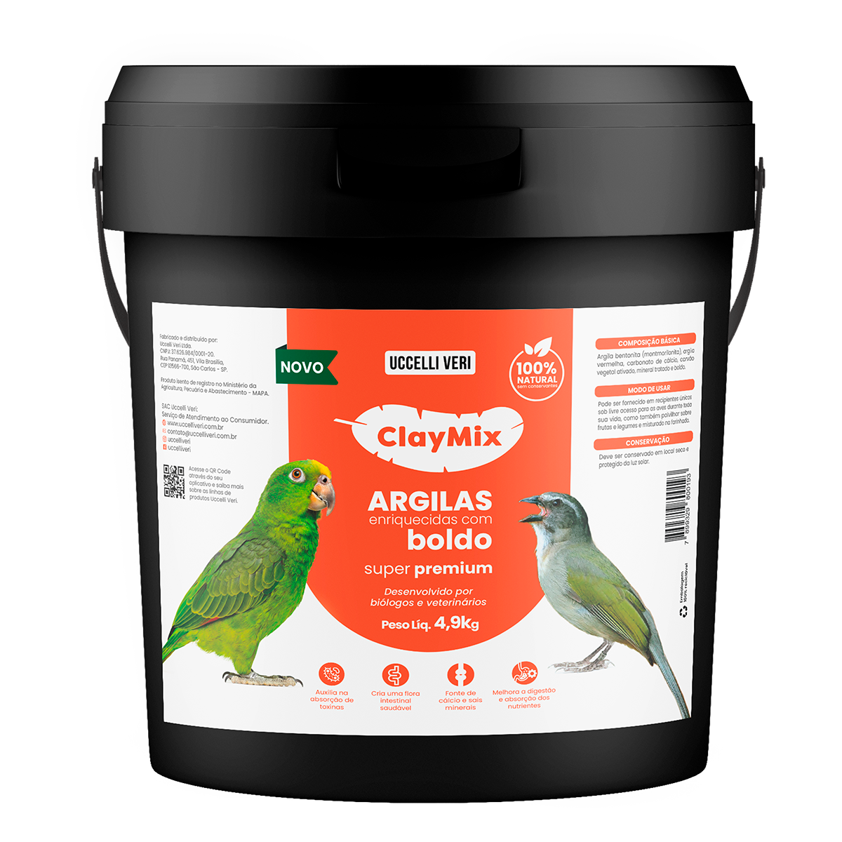 Na natureza, algumas espécies de pássaros, como papagaios, instintivamente se aglomeram em afloramentos rochosos ou argila, onde vão em buscar para desintoxicar seus sistemas digestivos após consumirem alimentos tóxicos ou para adicionar nutrientes que faltam à sua dieta. Esse processo é chamado de geofagia, que é o consumo de solo ou argila para benefício alimentar. Como as dietas de sementes são pobres em cálcio e sais minerais, a suplementação com ClayMix ajuda no desenvolvimento ósseo, na postura de ovos, penas, sistema nervoso, músculos e nas funções fisiológicas, equilibrando o organismo de forma saudável e natural.