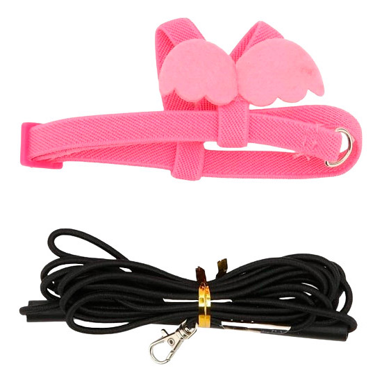 Coleira Ajustável Com Asas e Corda De Tração Para Pássaros Mansos - Rosa