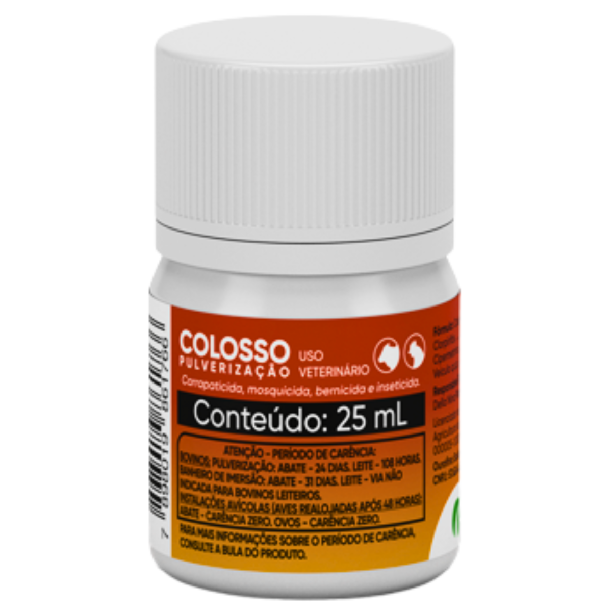 Colosso Pulverização Ectoparasiticida à base de Cipermetrina e Clorpirifós. Fórmula Cada 100 mL contém: Clorpirifós ......... 25,0 g Cipermetrina ......... 15,0 g Veículo q.s.p. ......... 100,0 mL COLOSSO PULVERIZAÇÃO é indicado para o tratamento estratégico e controle de dermatobiose bovina - berne (larvas de Dermatobia hominis), carrapato (Rhipicephalus Boophilus microplus) e no controle da mosca-dos-chifres (Haematobia irritans). Produto seguro para utilização em vacas gestantes, administrado via pulverização. COLOSSO PULVERIZAÇÃO também é indicado para o controle de infestações ambientais por adultos e larvas de Alphitobius diaperinus (cascudinho) em instalações avícolas destinadas à produção de aves de corte e postura. PARA BOVINOS: Diluir o COLOSSO PULVERIZAÇÃO na proporção de 1:800. Via Pulverização: A aplicação deve ser feita individualmente e com o animal contido. Utilizar para aplicação equipamento prático, confortável e capaz de possibilitar um banho com pressão forte o suficiente para a solução atingir o couro do animal. O bico utilizado deve ser em forma de leque e a aplicação de cima para baixo, no sentido contrário ao dos pelos, e sempre a favor do vento. Homogeneizar a mistura/calda e pulverizar sobre todo o corpo do animal incluindo orelhas, barbela, axilas, virilhas, inserção da cauda e toda a parte inferior do animal; deixando-o completamente molhado, para que o produto atinja mesmo carrapatos pequenos e em partes do corpo onde não são vistos com facilidade. Utilizar de 4 a 5 litros de calda por animal de acordo com a extensão corporal, ou seja, quantidade suficiente para molhar todo o corpo do animal. Para bezerros, reduzir o volume de calda aplicado para 3,5 L/animal. Após a diluição, utilizar a calda contendo COLOSSO PULVERIZAÇÃO em até 24 horas. Via banheiro de imersão: Realizar uma pré-mistura do produto com água limpa em um balde, agitando até a completa homogeneização. Adicionar essa primeira solução obtida ao tanque ou banheiro de imersão, parcialmente preenchido por água limpa e homogeneizar vigorosamente para obter uma solução final homogênea e de acordo com a diluição indicada. Não adicionar nenhum tipo de estabilizante. Os animais devem passar pelo banheiro de maneira individual, de modo que todo o corpo fique em pleno contato com a calda. O tanque ou banheiro de imersão deve estar limpo e livre de resíduos. Sempre que a solução permanecer parada, homogeneizar novamente. Realizar as recargas mediante análise da calda. Em estudo conduzido com o COLOSSO PULVERIZAÇÃO verificou-se que as concentrações dos ativos variam em função do nível de calda do banheiro de imersão e durante 12 meses foram necessárias 3 (três) recargas na proporção de 1:800, que foram realizadas em função da redução de no mínimo 10% do volume da calda. PARA INSTALAÇÕES AVÍCOLAS: Aplicar o produto via atomizador, com a possibilidade de uso via pulverização, nas instalações avícolas, sem a presença de aves. Após a retirada das aves, o aviário deve ser submetido aos procedimentos usuais de limpeza e desinfecção previamente à aplicação do produto. Via Pulverização: Diluir o produto na proporção de 1:400 mantendo a recomendação de 1000 litros de calda para 1.200 m2 de área. Via Atomização: Diluir o produto na proporção de 1:8. Após a diluição, aplicar a calda por todo o aviário, de forma que, independente da via de aplicação (pulverização ou atomização), 2,5 litros de COLOSSO PULVERIZAÇÃO são suficientes para a pulverização de um aviário com 1.200 m2. Após misturar até a completa homogeneização da calda, pulverizar em toda a área de alojamento das aves, incluindo paredes, pilares, vigas, travessas, tesouras, muretas, beirais, caixas de ração, cortinas e ninhos. Quando a cama for reutilizada, abrir a cama para possibilitar que o produto chegue ao piso do aviário. Não pulverizar os aviários com as aves alojadas. Indica-se que as aves retornem ao galpão após pelo menos 48 horas da aplicação do produto. Geralmente o tratamento em dose única é suficiente para diminuir a carga parasitária nos animais e nas instalações avícolas, entretanto, as práticas de manejo existentes em cada propriedade, assim como em granjas, como a rotação de pastagens, instalações, densidade animal, sexo, assim como características genéticas ou raciais, podem influenciar na incidência de parasitas e, consequentemente na eficácia do produto. Assim, cada propriedade rural poderá apresentar necessidades diferentes para o controle parasitário, sendo recomendado o controle integrado e estratégico de parasitas, a ser definido pelo médico-veterinário. BOVINOS PULVERIZAÇÃO: ABATE: O ABATE DOS ANIMAIS TRATADOS COM ESTE PRODUTO POR ESTA VIA DE ADMINISTRAÇÃO SOMENTE DEVE SER REALIZADO 24 DIAS APÓS A ÚLTIMA APLICAÇÃO. LEITE: O LEITE DOS ANIMAIS TRATADOS COM ESTE PRODUTO NÃO DEVE SER DESTINADO AO CONSUMO HUMANO ATÉ 108 HORAS APÓS A ÚLTIMA APLICAÇÃO DESTE PRODUTO. BANHEIRO DE IMERSÃO: ABATE: O ABATE DOS ANIMAIS TRATADOS COM ESTE PRODUTO POR ESTA VIA DE ADMINISTRAÇÃO SOMENTE DEVE SER REALIZADO 31 DIAS APÓS A ÚLTIMA APLICAÇÃO. LEITE: ESTA VIA DE ADMINISTRAÇÃO DO PRODUTO É CONTRAINDICADA PARA FÊMEAS PRODUTORAS DE LEITE PARA O CONSUMO HUMANO. INSTALAÇÕES AVÍCOLAS (AVES REALOJADAS APÓS 48 HORAS): ABATE E OVOS: O PRODUTO NÃO REQUER PERÍODO DE CARÊNCIA PARA O ABATE DE AVES OU PARA O CONSUMO DE OVOS DE AVES REALOJADAS EM INSTALAÇÕES QUE RECEBERAM O PRODUTO. Última atualização: 08/05/2025 |