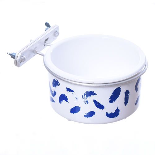 Produto de excelente qualidade, fabricado em plástico e suporte em metal. Utilizado para servir alimentos em gaiolas ou viveiros. Medidas: