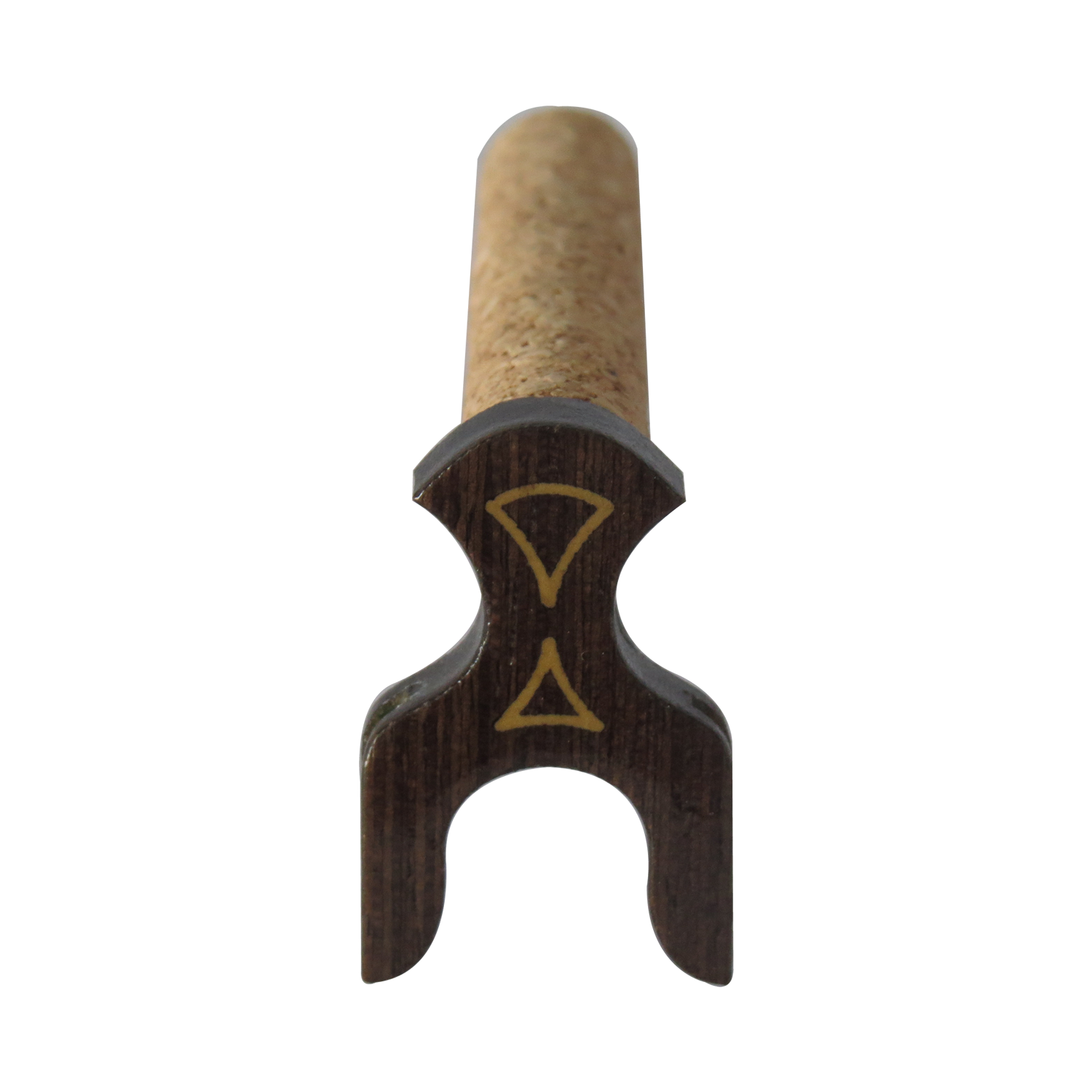 Dorminhoco em cortiça natural, malha larga e presilha na cor marrom. |