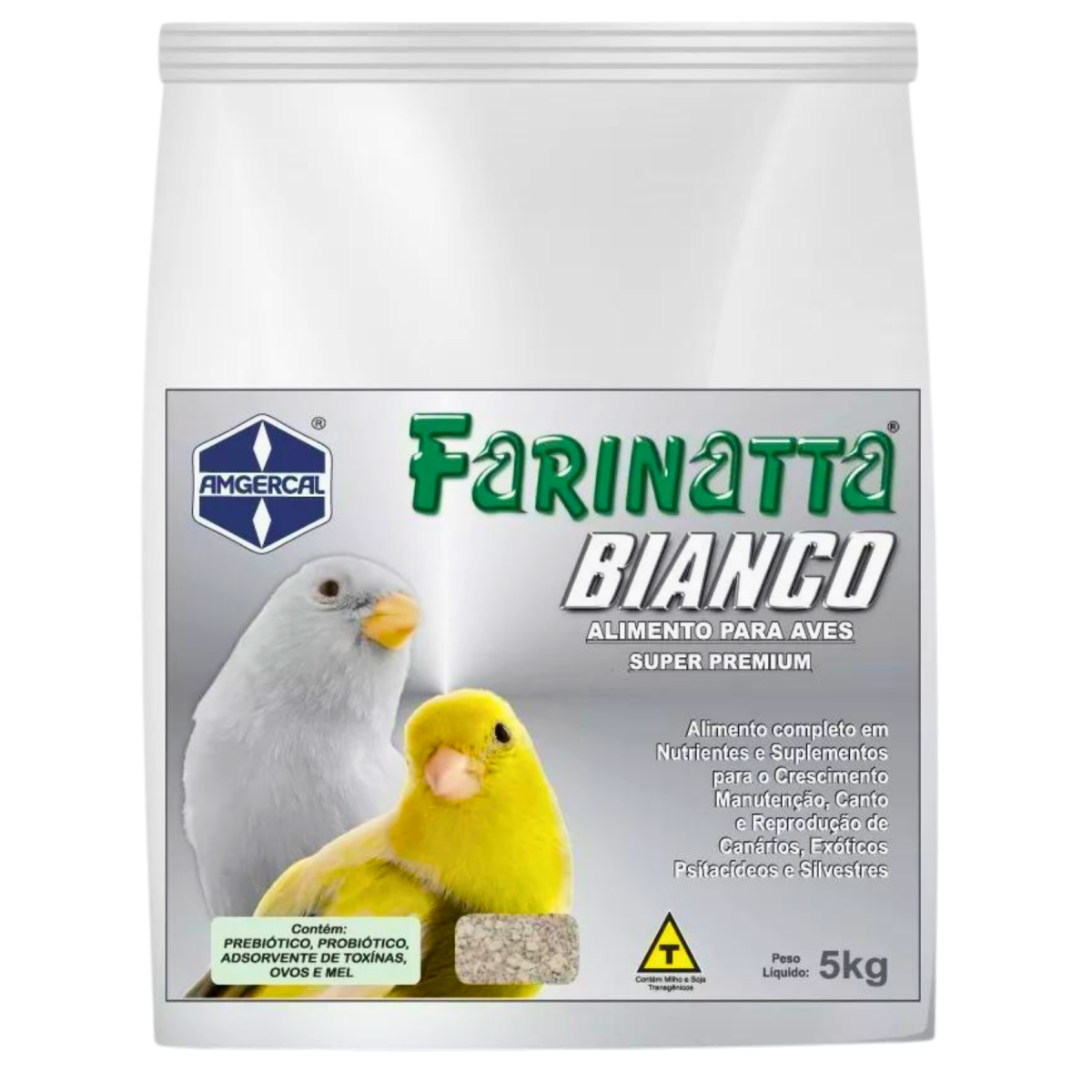 FARINATTA BIANCO VITAFORT - AMGERCAL - 5 KG - Alimento completo em nutrientes e suplementos para o Crescimento e Manutenção de canários da terra, coleira e outros pássaros silvestres, aves exóticos e psitacídeos.