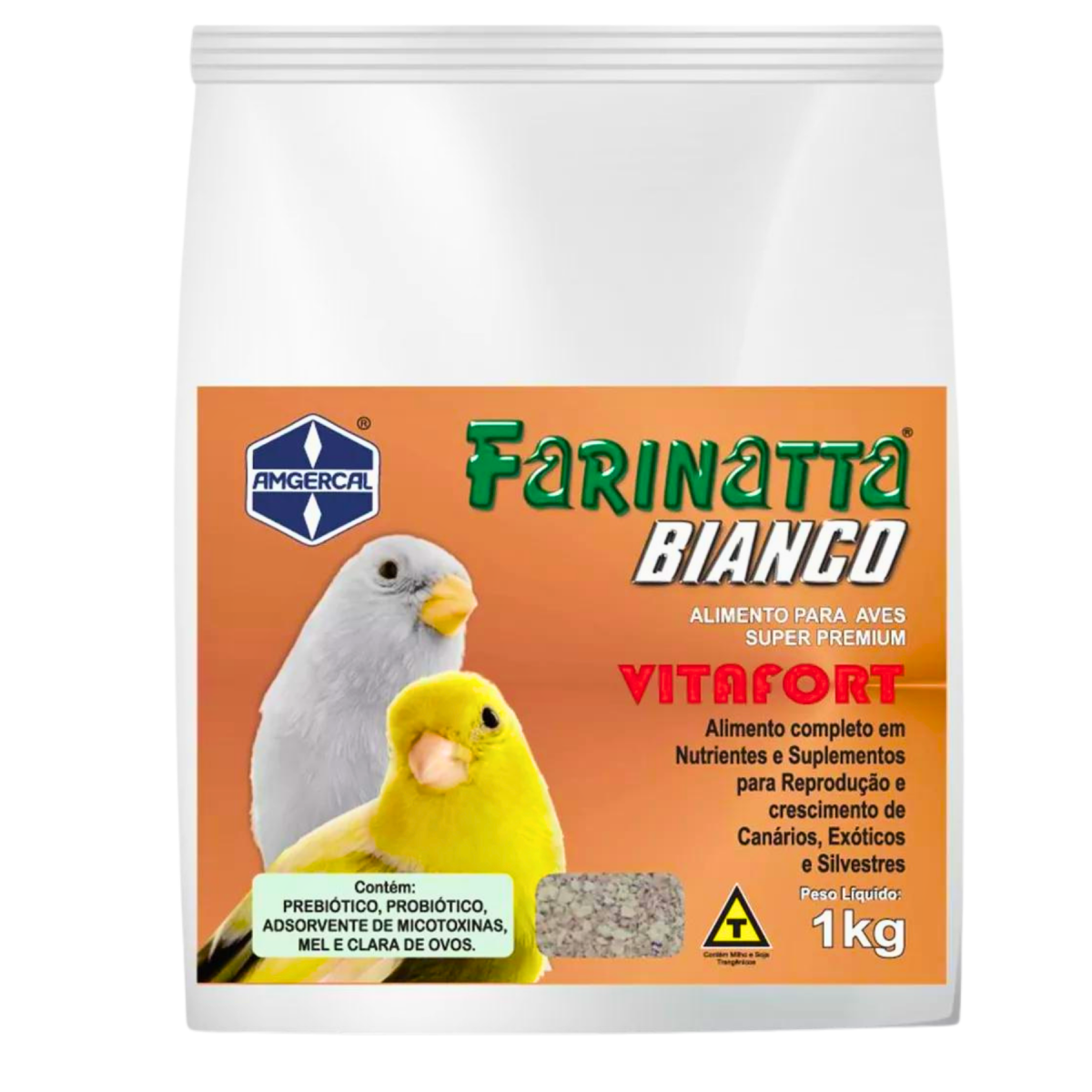FARINATTA BIANCO VITAFORT - AMGERCAL - 1 KG - Alimento completo em nutrientes e suplementos para o Crescimento e Manutenção de canários da terra, coleira e outros pássaros silvestres, aves exóticos e psitacídeos.