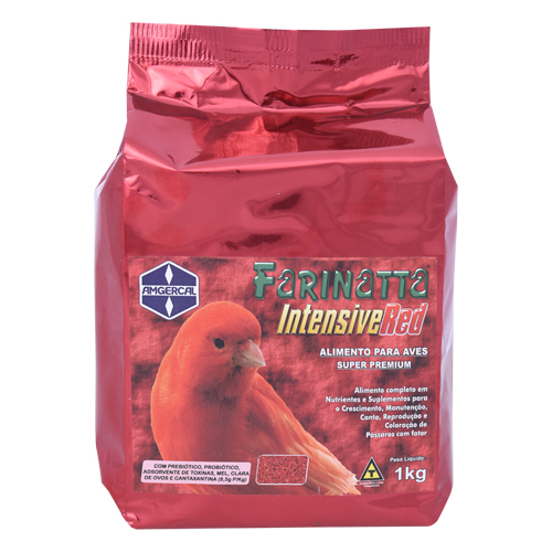 Este alimento atende as necessidades básicas diárias de nutrientes das aves, podendo ser usada, seguramente, como única fonte de alimento. A suplementação especial confere à este produto uma ação promotora de crescimento, com melhora da eficácia alimentar e da produtividade das aves; estimula o sistema imunológico aumentando a resistência de adultos e filhotes, e promove controle inespecífico de microorganismos patogênicos. O fornecimento de Cantaxantina e do Intensificador da cor vermelha de forma contínua e balanceada na Farinatta, promove a coloração vermelha perfeita das penas, evitando as manchas horizontais características da irregularidade no fornecimento do pigmento. Modo de Usar: Composição: Com prebiótico, probiótico, adsorvente de toxinas, mel, clara de ovos e cantaxantina (8,5 g p/ kg) Farelo de pão, milho gelatinizado, farinha de milho branco, farelo de trigo, proteína texturizada de soja, mel, sementes de niger, nabão, levedura seca de cana de açúcar, fostato bicálcico, ácido lático, ácido fumárico, ácido cítrico, propionato de cálcio, bentonita, ácido nicotínico, ácido fólico, biotina, sulfato de cobalto, sulfato de cobre, cloreto de colina, sulfato de ferro, iodato de cálcio, L-lisina, Monóxido de manganes, DL-metionina, pantotenato de cálcio, selenito de sódio, cloreto de sódio, vitamina A, B1, B12, B2, B6, C, D3, E, K3 e Óxido de zinco e Cantaxantina 10%. |
