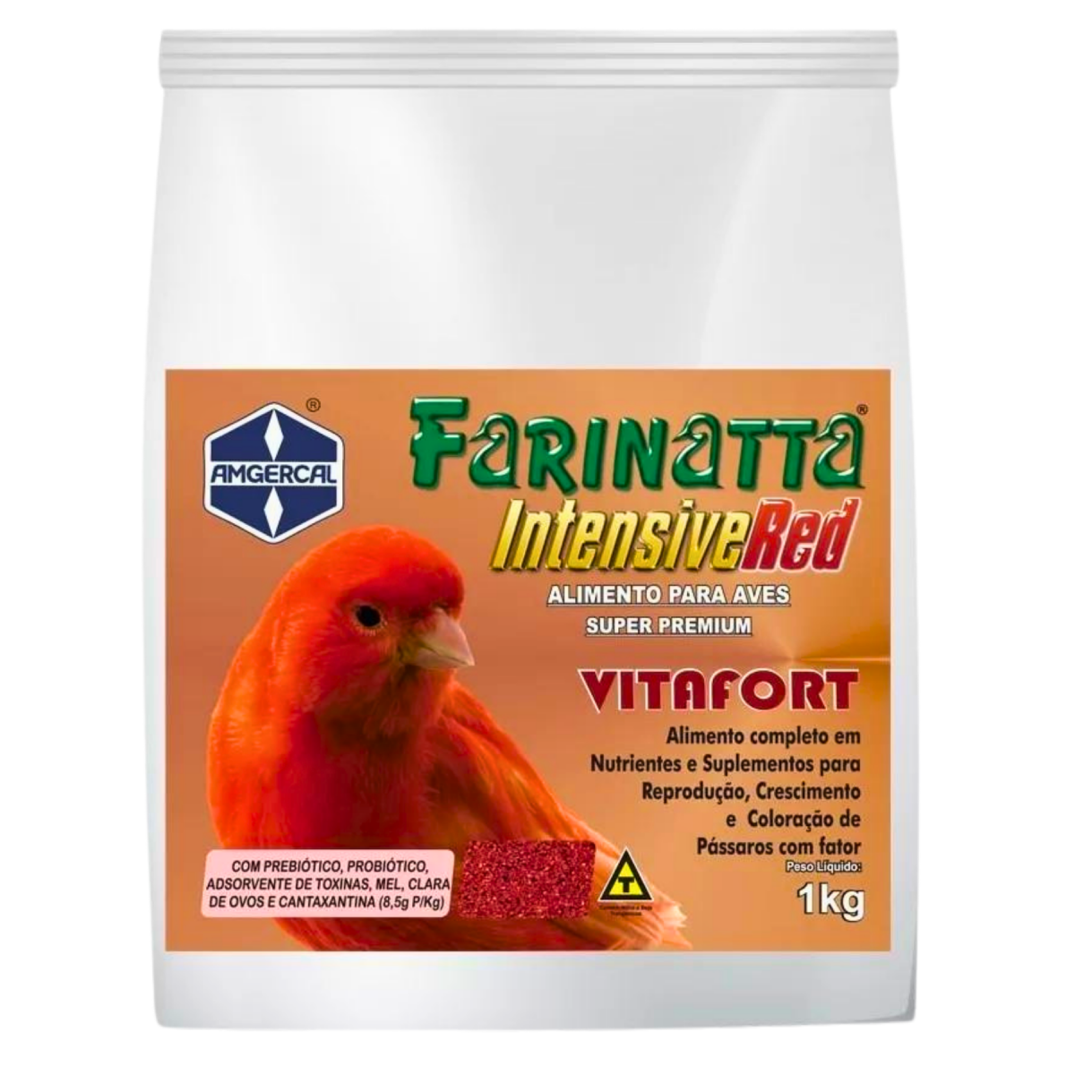 FARINATTA INTENSIVE RED VITAFORT - AMGERCAL - 1 KG - Alimento completo em nutrientes e suplementos para o Crescimento, Manutenção, Canto, Reprodução e Coloração de pássaros com fator vermelho, como canários e pintassilgo da venezuela.