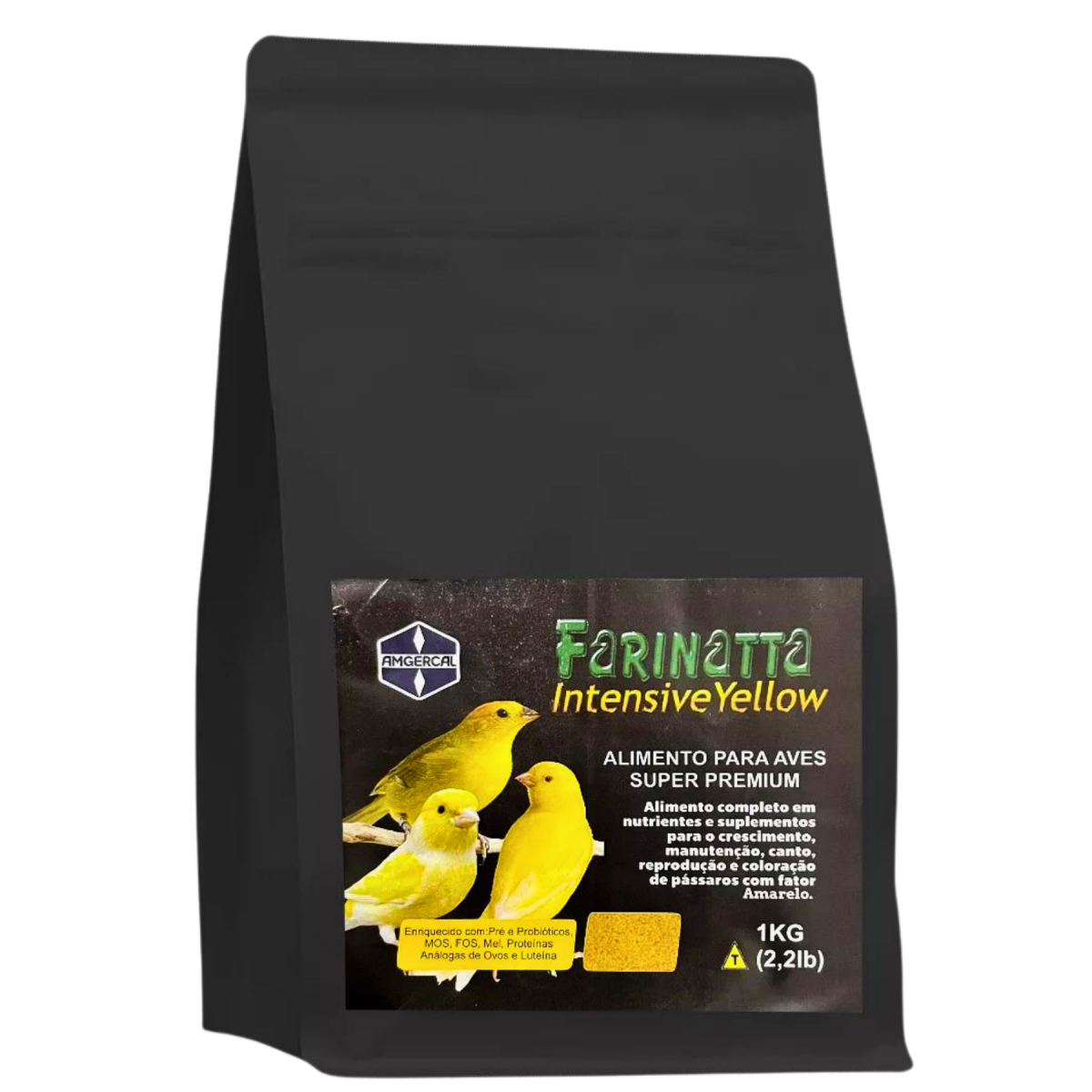 FARINATTA INTENSIVE YELLOW - AMGERCAL - 1 KG - uma farinhada completa projetada para o crescimento e cuidado de pássaros silvestres e exóticos, especialmente aqueles com plumagem amarela, como canários, pintassilgos e papagaios exóticos.