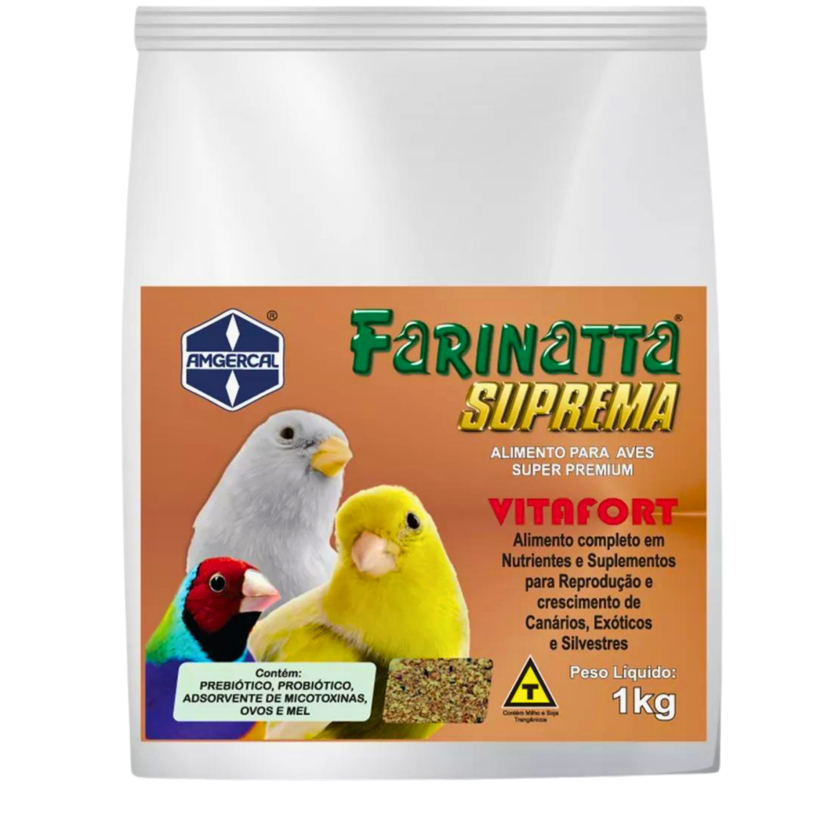 FARINATTA SUPREMA VITAFORT - AMGERCAL - 1 KG - Alimento completo em nutrientes e suplementos para o Crescimento e Manutenção de canários, pássaros silvestres, aves exóticos, e psitacídeos. Indicada para Pintassilgos. |