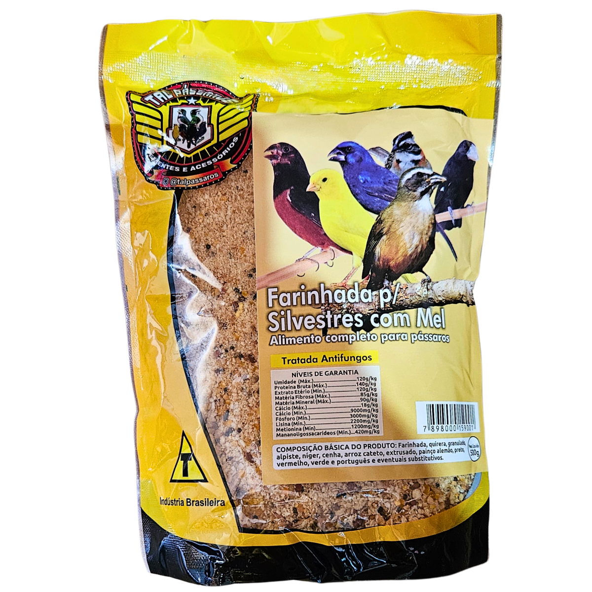 FARINHADA SILVESTRES COM MEL PREMIUM TAL PÁSSAROS - 500 gFARINHADA DE ALTA QUALIDADE INDICADA PARA AS AVES SILVESTRES DA NOSSA FAUNA.
