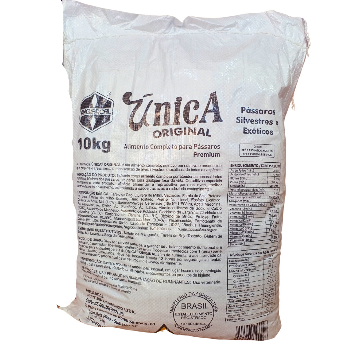 FARINHADA ÚNICA - AMGERCAL - 10 KG - Farinhada Única é um alimento completo em nutrientes necessários para o crescimento, manutenção, canto e reprodução de Canários, Pássaros Silvestres e Aves Exóticas. Farinhada Única atende as necessidades nutricionais básicas diárias, podendo ser usada com segurança, como única fonte de alimento. |