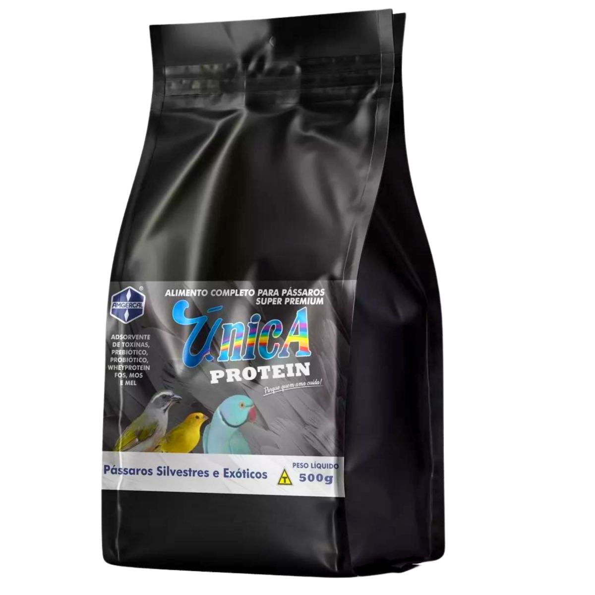 FARINHADA ÚNICA PROTEIN - AMGERCAL - 500 g - é um alimento completo em nutrientes e suplementos para o crescimento e manutenção de pássaros silvestres e exóticos, especialmente os pássaros de fibra Sua formulação hiper proteica auxilia o ganho de massa magra e provem um melhor desempenho de canto e resistência dos pássaros É uma dieta 100 focada nos pássaros desportistas. |