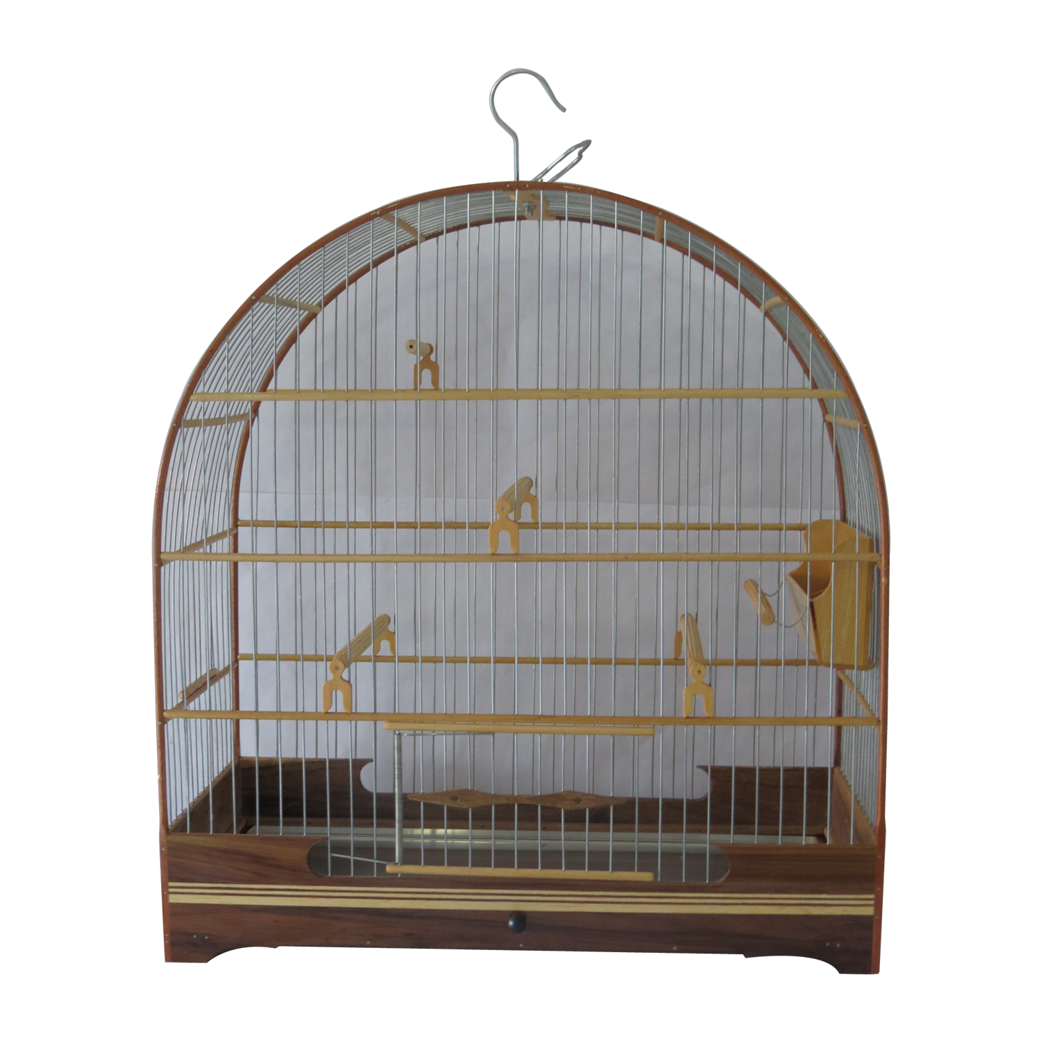 Gaiola produzida em madeira canela, com filetes claros, arame galvanizado, malha Fina. Excelente acabamento.