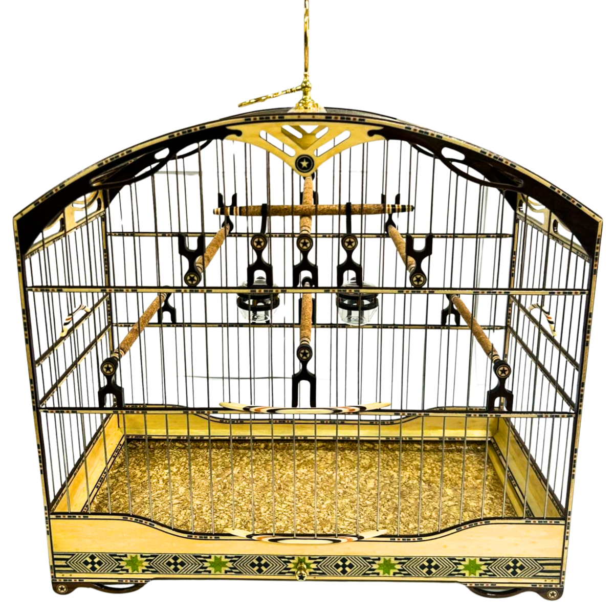 Surpreenda-se com essa gaiola exclusiva desenvolvida em edição limitada, pensada para quem valoriza sofisticação, qualidade e atenção aos mínimos detalhes. Uma peça que une tradição artesanal e design refinado, ideal para criadores exigentes e apaixonados por peças únicas. Produzida com estrutura em arame de aço inoxidável, essa belíssima gaiola conta com acabamento impecável e é resultado de meses de trabalho minucioso de uma equipe talentosa de artesãos. A madeira clara, rica em detalhes de marchetaria por toda a estrutura, proporciona um visual elegante e atemporal. O fundo é feito em alumínio com revestimento estilo amadeirado em papel contact, oferecendo durabilidade e charme. Sua grade inferior é removível e conta com saída lateral, equipada com trava de segurança dourada, garantindo praticidade no manuseio e na limpeza. Entre os acessórios inclusos estão: