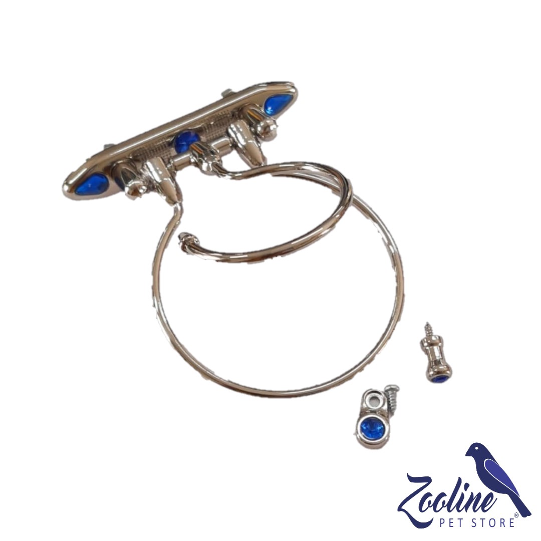 KIT LUXO - ALÇA + PUXADOR + TRAMELA PRATA - COM PEDRAS AZUIS - G