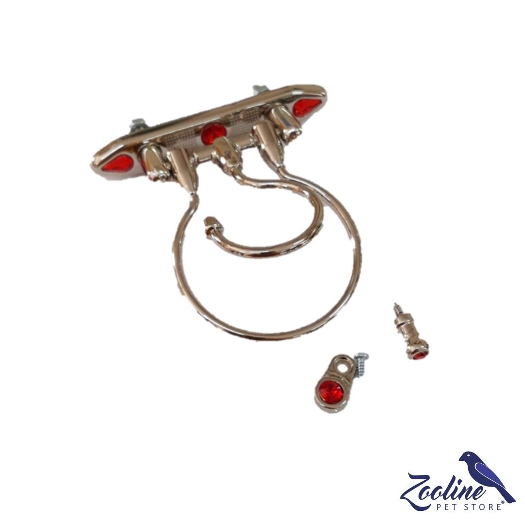 KIT LUXO - ALÇA + PUXADOR + TRAMELA PRATA - COM PEDRAS VERMELHAS - P