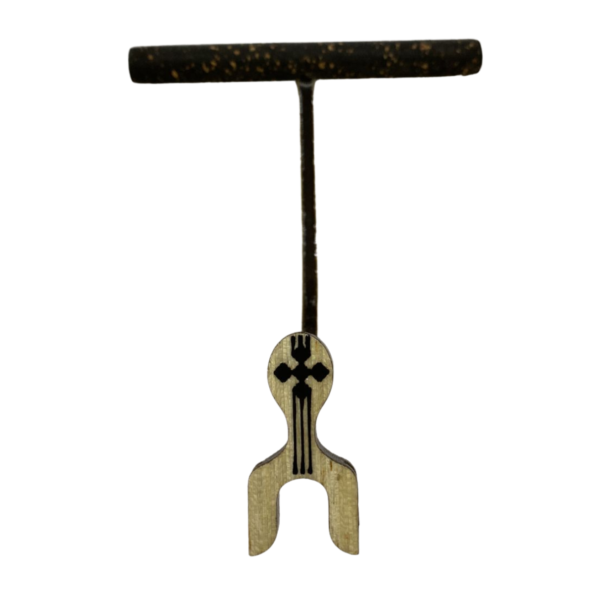 Maritaca lateral grande em cortiça preta, malha fina, com presilha na cor branca. |