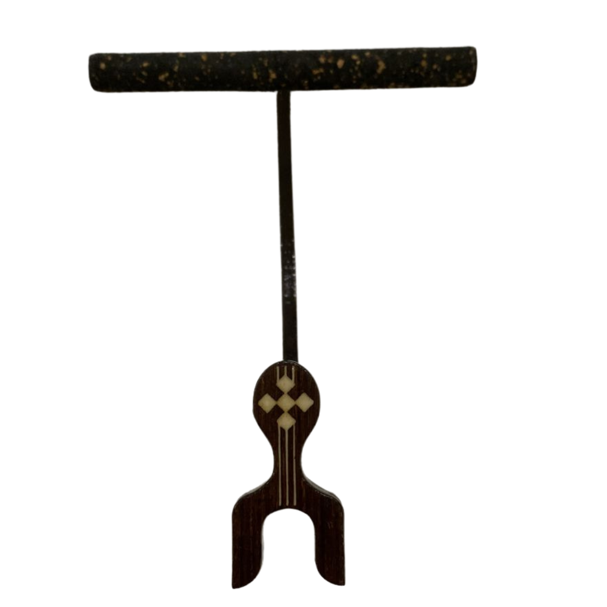 Maritaca lateral grande em cortiça preta, malha fina, com presilha na cor marrom. |