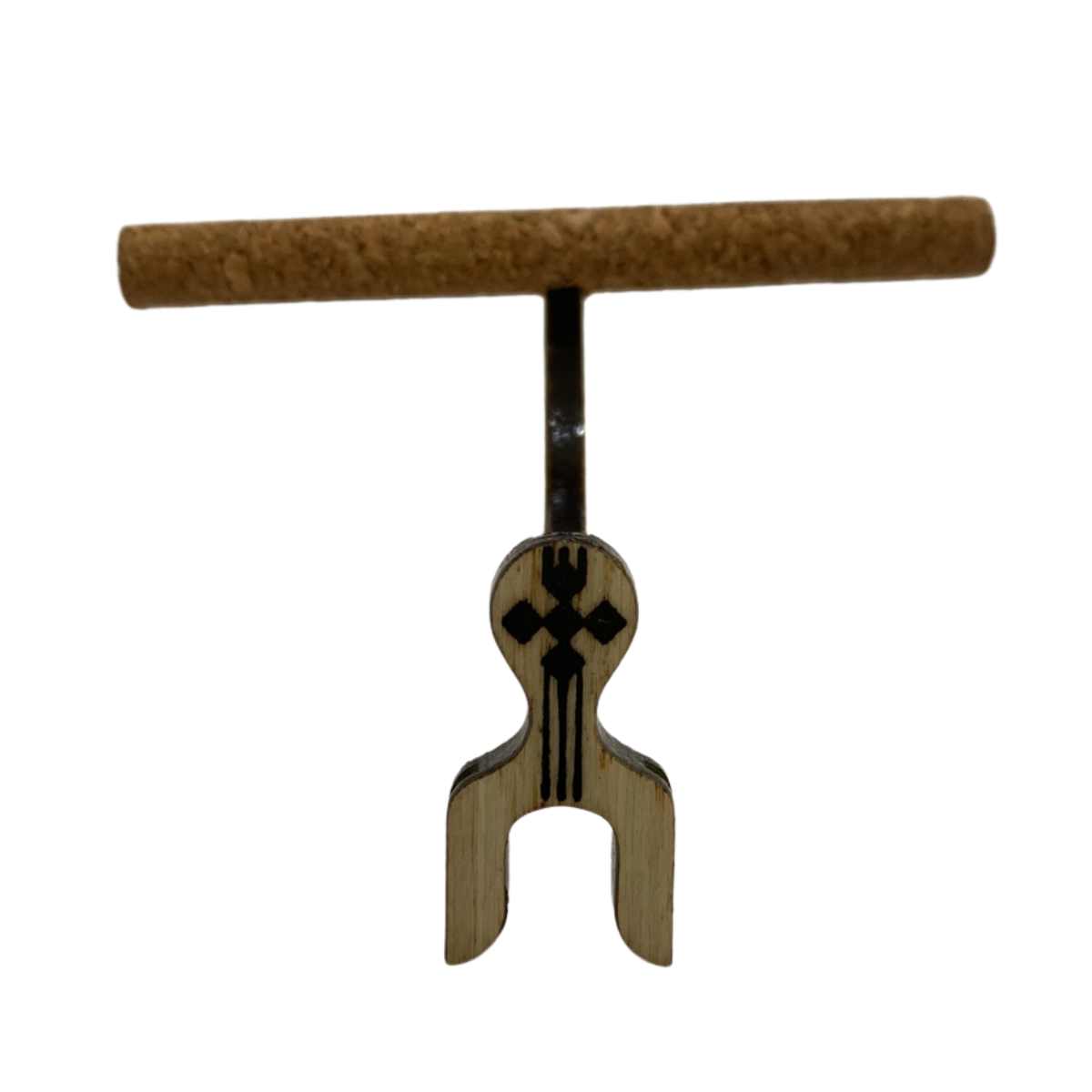 Maritaca lateral pequena em cortiça natural, malha fina, com presilha na cor branca. |