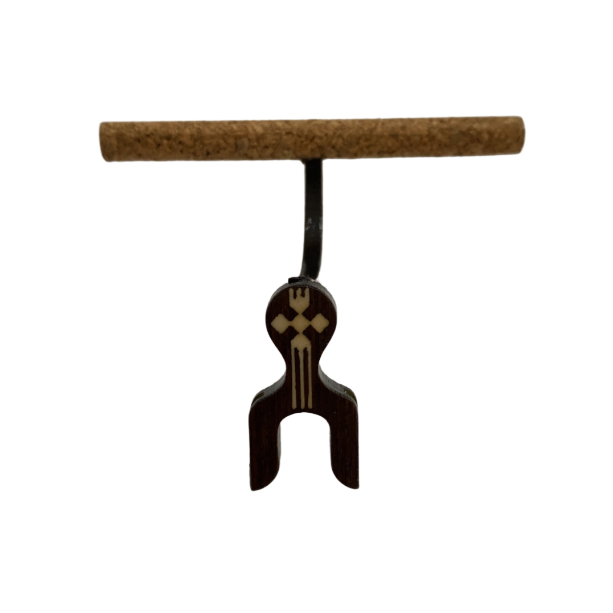 Maritaca lateral pequena em cortiça natural, malha fina, com presilha na cor marrom. |