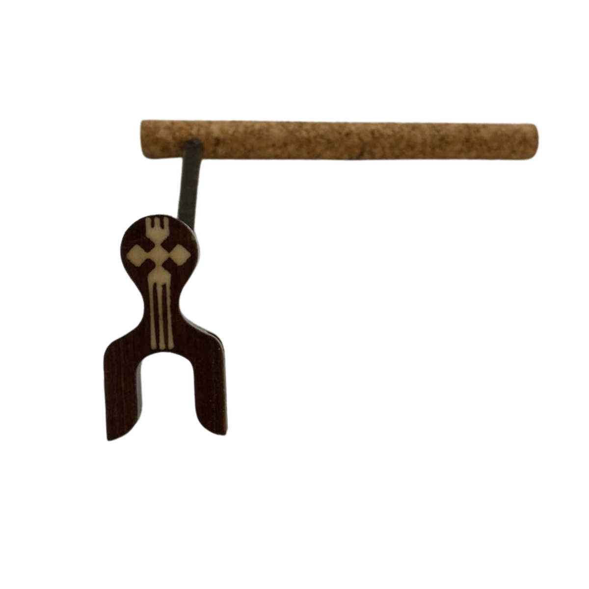 Maritaca de teto pequena em cortiça natural, malha fina, com presilha na cor marrom. |