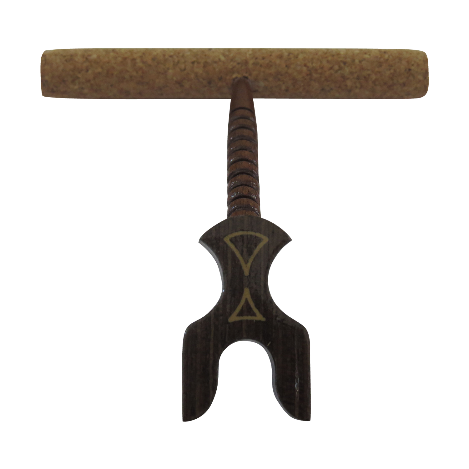 Maritaca torneada lateral grande em cortiça natural, malha fina, com presilha na cor marrom. |