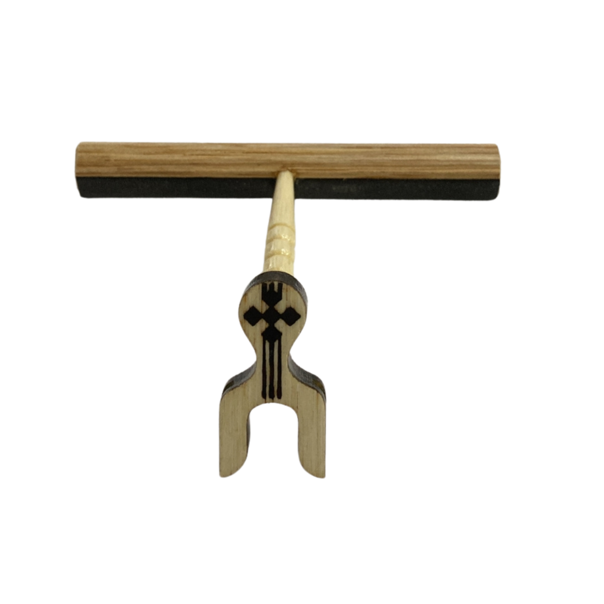 Maritaca torneada lateral pequena estriada natural com lixa, malha fina, com presilha na cor branca. |