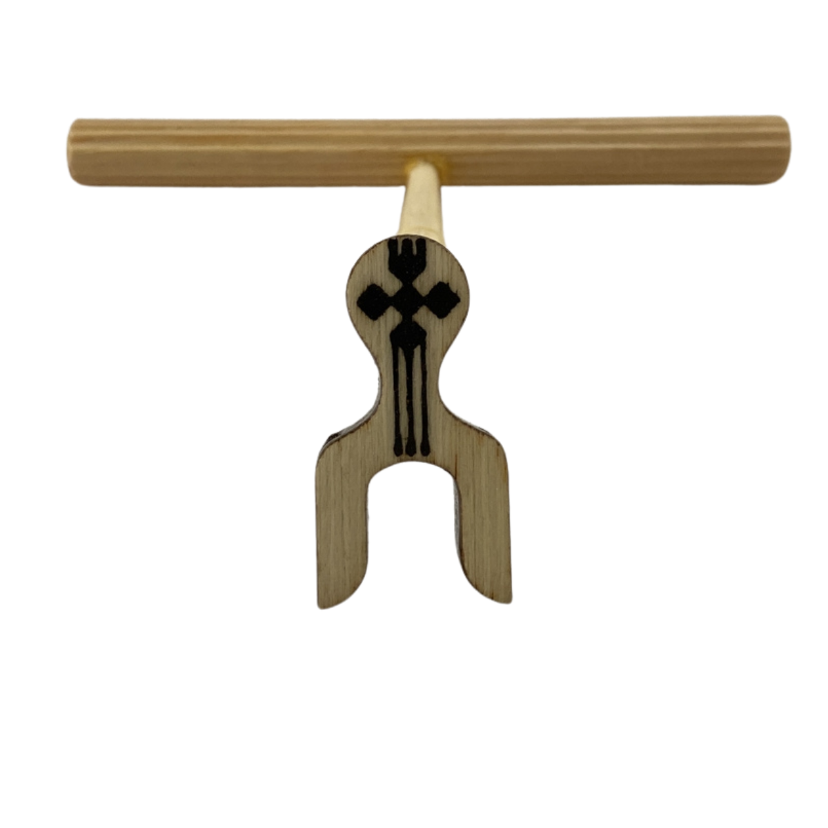 Maritaca torneada lateral pequena estriada natural sem lixa, malha fina, com presilha na cor branca. |