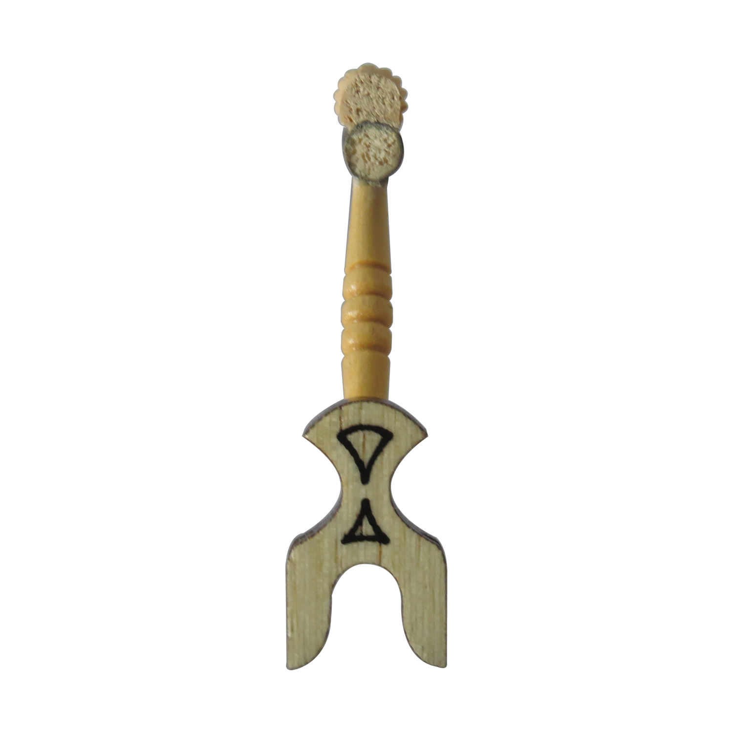Maritaca torneada pequena estriada natural com lixa, malha fina, com presilha na cor branca. |