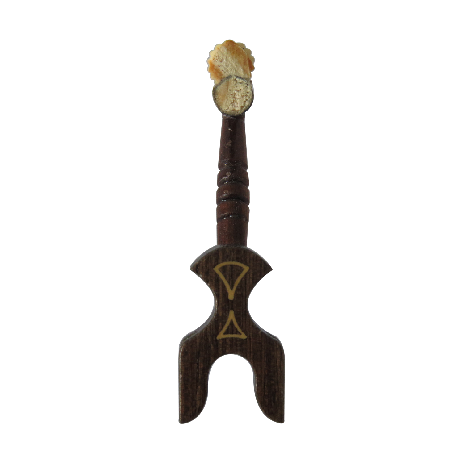 Maritaca torneada pequena estriada natural com lixa, malha fina, com presilha na cor marrom. |