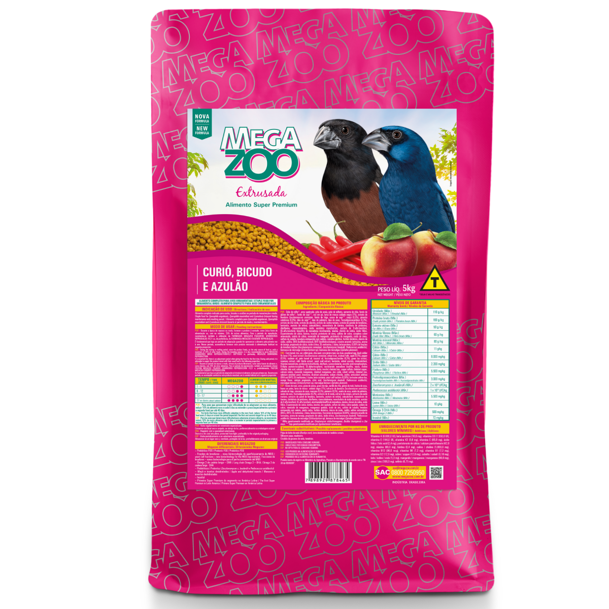 MEGAZOO EXTR. CURIÓ, BICUDO E AZULÃO 5 KG