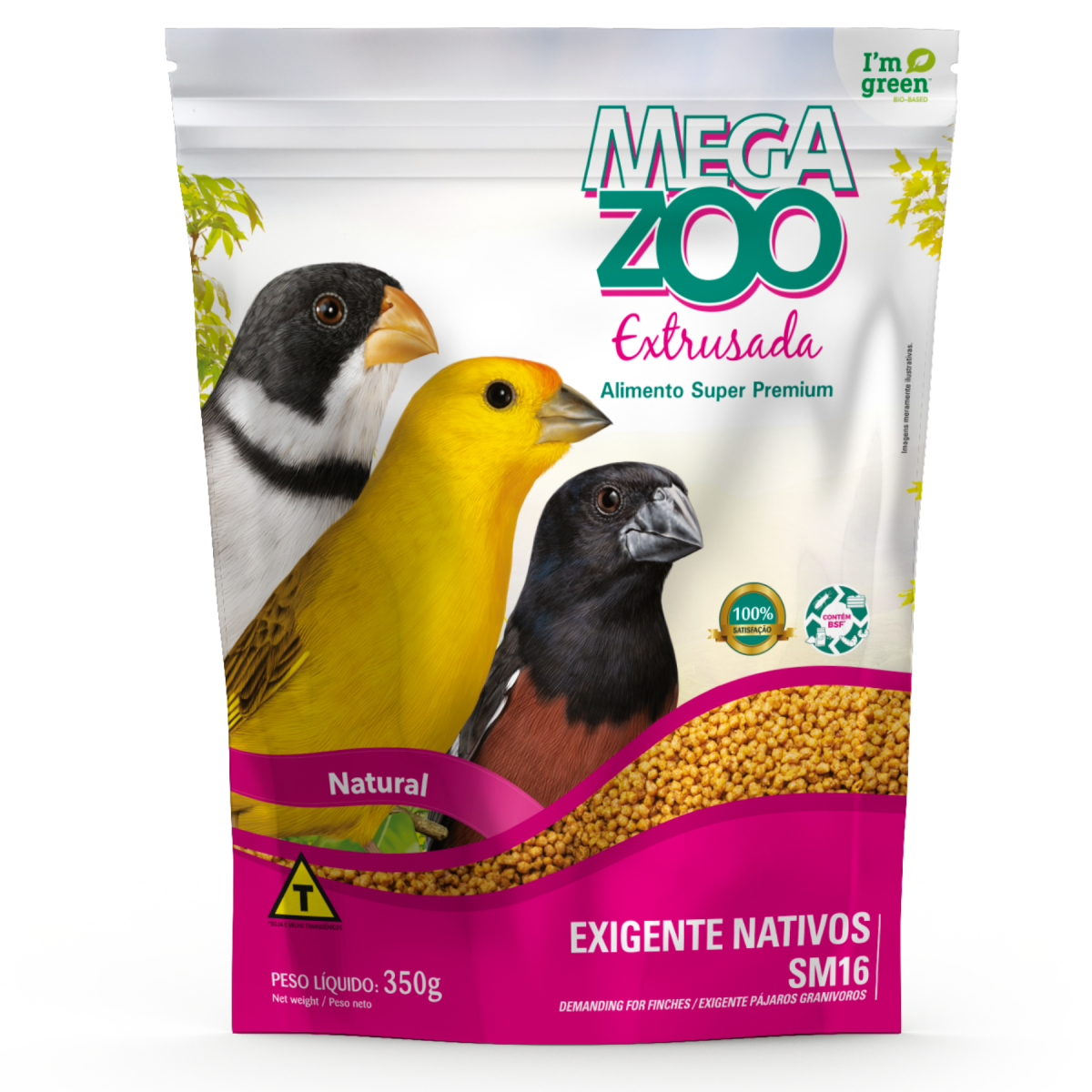 Alimento completo para aves ornamentais indicado para pássaros nativos e exóticos tais como canários-da-terra, diamantes-de-gould, calafates, curiós, bicudos e outros granívoros no período de manutenção e muda. Ao contrário do que ocorre na natureza, onde o consumo de alimentos energéticos é importante, em cativeiro, sem muita atividade física, toda energia em excesso é depositada como gordura no organismo, o que compromete a longevidade e a expectativa de vida de suas aves. A filosofia da MEGAZOO PÁSSAROS NATIVOS E EXÓTICOS é garantir um aporte de nutrientes que favoreça a qualidade de vida.