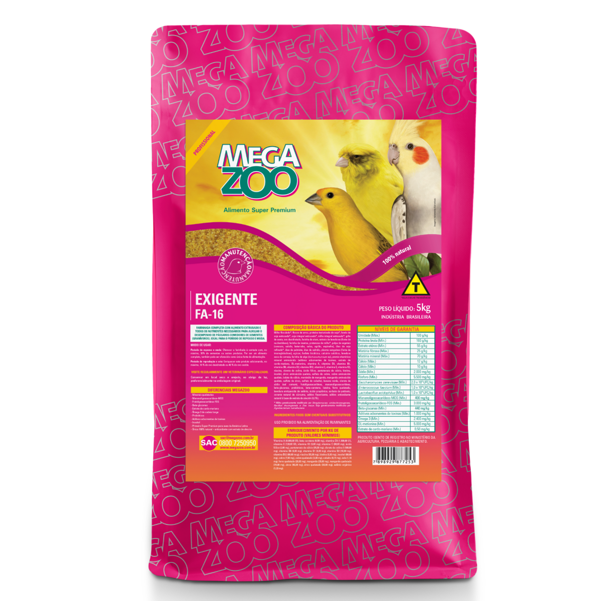 MEGAZOO FA16 FAR. PÁSSAROS COMEDORES DE SEMENTES MANUTENÇÃO 5 KG