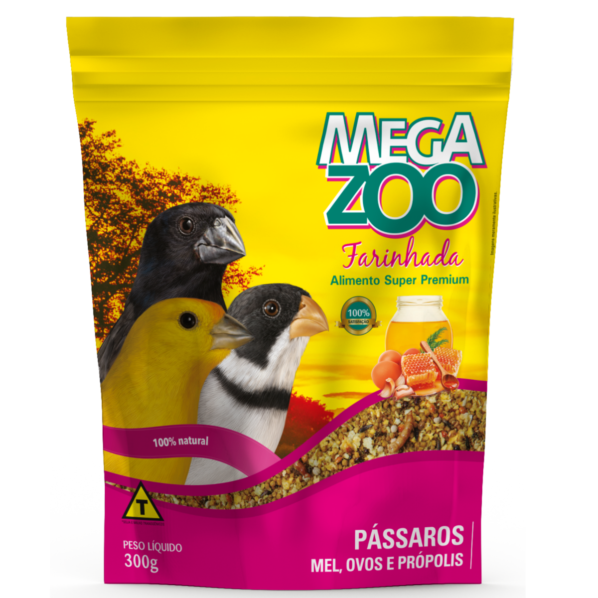 Alimento completo indicado para pássaros granívoros como curiós, bicudos, azulões, canários, pintassilgos, coleiros, entre outros. MODO DE USAR: Especialmente importante para aves cuja dieta é baseada em sementes, uma vez que fornece micronutrientes normalmente escassos nesse tipo de dieta. Deve ser oferecida à vontade, durante todo o ano. Para aves reprodutoras, durante esse período, recomenda-se fornecer a farinhada Megazoo Exigente reprodução. Recomenda-se também o uso da linha de alimentos extrusados MEGAZOO exigente pássaros nativos. DIFERENCIAIS MEGAZOO: - Minerais quelatados - Prebióticos - FOS e MOS - Extrato de cardo-mariano - Probióticos ? incluindo leveduras vivas - Ômega 3 de cadeia longa ? EPA e DHA - Inositol - Alho e própolis - Primeira Super Premium de aves da América Latina - 100% natural ? antioxidante a base de alecrim COMPOSIÇÃO BÁSICA DO PRODUTO: Flocos de milho* , Milho integral moído*, arroz, proteína texturizada de soja*, farelo de soja extrusado*, aveia integral, farelo de trigo, germe de trigo, ovo desidratado (5%), farinha de salmão, mel (5%), extrato de levedura (fonte de nucleotídeos), plasma sanguíneo, semente de linhaça, semente de painço, trigo sarraceno, perila branca, níger, insetos desidratados (3%), protenose de milho*, levedura seca de cerveja, fosfato bicálcico, Schizochytrium calcário calcítico, farinha de alga (sp), fibra de ervilha, banana verde, polpa de beterraba, polpa de vegetais ? com salsão, beterraba, salsa, agrião, espinafre), maçã desidratada, alho desidratado (0,5%), óleo de girassol, óleo de salmão, óleo de coco, óleo de soja*, premix vitamínico mineral aminoácido (aditivos adsorventes de toxinas, extrato de cardo-mariano, DL-metionina, vitamina A, vitamina D3, vitamina B1, vitamina B6, vitamina B2, vitamina B12, vitamina C, vitamina E, vitamina K3, niacina, cloreto de colina, ácido fólico, pantotenato de cálcio, biotina, inositol, zinco aminoácido quelato, sulfato de cobre, cobre aminoácido quelato, iodato de cálcio, monóxido de manganês, manganês aminoácido quelato, sulfato de zinco, sulfato de cobalto), cloreto de sódio (sal comum), frutoligossacarídeos - FOS, spirulina, probióticos, aditivo fungistático, ferro quelatado, beta-caroteno, luteína, parede celular de leveduras (fonte de MOS), levedura enriquecida de selênio, ácido cítrico, aditivo flavorizante, extrato de própolis (0,5%), corante natural de cúrcuma, antioxidante natural a base de extrato de alecrim (0,1%). |