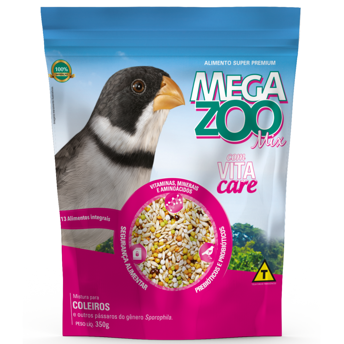 Alimento para aves ornamentais indicado para coleiros e outros pássaros do gênero Sporophila. DIFERENCIAIS MEGAZOO - Eliminação de ácaros e insetos pelo processo de câmara hiperbárica - Primeira Super Premium para aves da América Latina - Presença de vitacare contendo: - Adsorvente de toxinas de fungos presentes nas sementes - Extrato de cardo-mariano - Prebióticos e probióticos - Inositol - Vitaminas, minerais e aminoácidos MODO DE USAR: Fornecer MEGAZOO MIX COLEIROS sempre em comedouros limpos e apropriados, de preferência como complementação dos produtos da linha de alimentos completos e balanceados da MEGAZOO. Por conter grãos extrusados, esse produto auxilia no processo de adaptação das aves a esse tipo de alimento. COMPOSIÇÃO BÁSICA DO PRODUTO Grão de alpiste, grão de painço, painço preto, painço vermelho, painço verde, painço branco, senha, perila branca, aditivo flavorizante, 15 % de Megazoo Vitacare contendo: milho integral moído*, farelo de soja*, arroz, aveia integral, semente integral de chia, proteína de soja micronizada*, insetos desidratados, maçã desidratada, ovo desidratado, extrato de levedura (fonte de nucleotídeos), farelo de trigo, fibra de soja*, polpa de vegetais (cenoura, salsão, beterraba, salsa, agrião, espinafre), calcário calcítico, fosfato bicálcico, farinha de alga (Schizochytrium sp), spirulina, óleo de girassol, óleo de coco, óleo de soja*, cloreto de sódio (sal comum), aditivo fungistático, mananoligossacarídeos - MOS, frutoligossacarídeos ? FOS, beta-glucanas, probióticos, premix vitamínico mineral aminoácido (aditivos adsorventes de toxinas,extrato de cardo-mariano, DL-metionina, vitamina A, vitamina D3, vitamina B1, vitamina B6, vitamina B2, vitamina B12, vitamina C, vitamina E, vitamina K3, niacina, cloreto de colina, ácido fólico, pantotenato de cálcio, biotina, inositol, zinco aminoácido quelato, sulfato de cobre, cobre aminoácido quelato, iodato de cálcio, monóxido de manganês, manganês aminoácido quelato, sulfato de zinco, sulfato de cobalto), L-lisina, DL-metionina, betacaroteno, corante alimentício, ferro quelatado, levedura enriquecida de selênio, parede celular de leveduras, sucralose, aditivo antioxidante (BHA).cobre aminoácido quelato, iodato de cálcio, monóxido de manganês, manganês aminoácido quelato, sulfato de zinco, sulfato de cobalto), L-lisina, DL-metionina, betacaroteno, corante alimentício, ferro quelatado, levedura enriquecida de selênio, parede celular de leveduras, sucralose, aditivo antioxidante (BHA).cobre aminoácido quelato, iodato de cálcio, monóxido de manganês, manganês aminoácido quelato, sulfato de zinco, sulfato de cobalto), L-lisina, DL-metionina, betacaroteno, corante alimentício, ferro quelatado, levedura enriquecida de selênio, parede celular de leveduras, sucralose, aditivo antioxidante (BHA). |