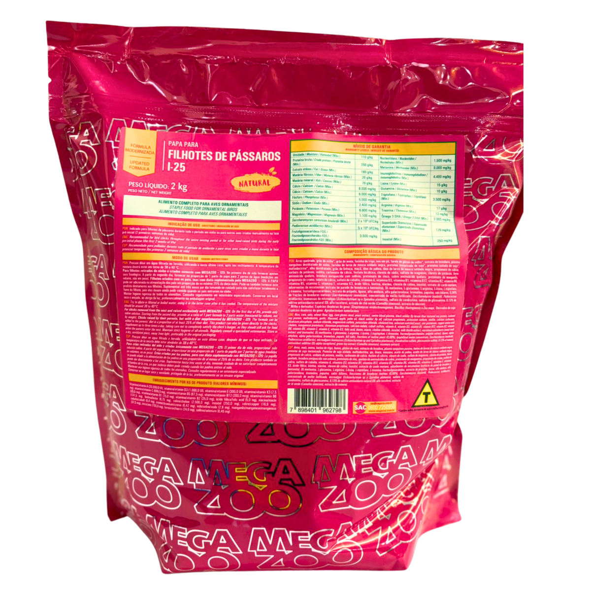 Filhotes criados com os pais, mas suplementados com MEGAZOO Papa para Filhotes de Pássaros ? I25: A papa pode ser adicionada na alimentação dos pais em proporção mínima de 25% da dieta. Também pode ser fornecida diretamente aos filhotes até três vezes ao dia, sempre sem satisfazer totalmente a fome, para que continuem solicitando alimento aos pais.