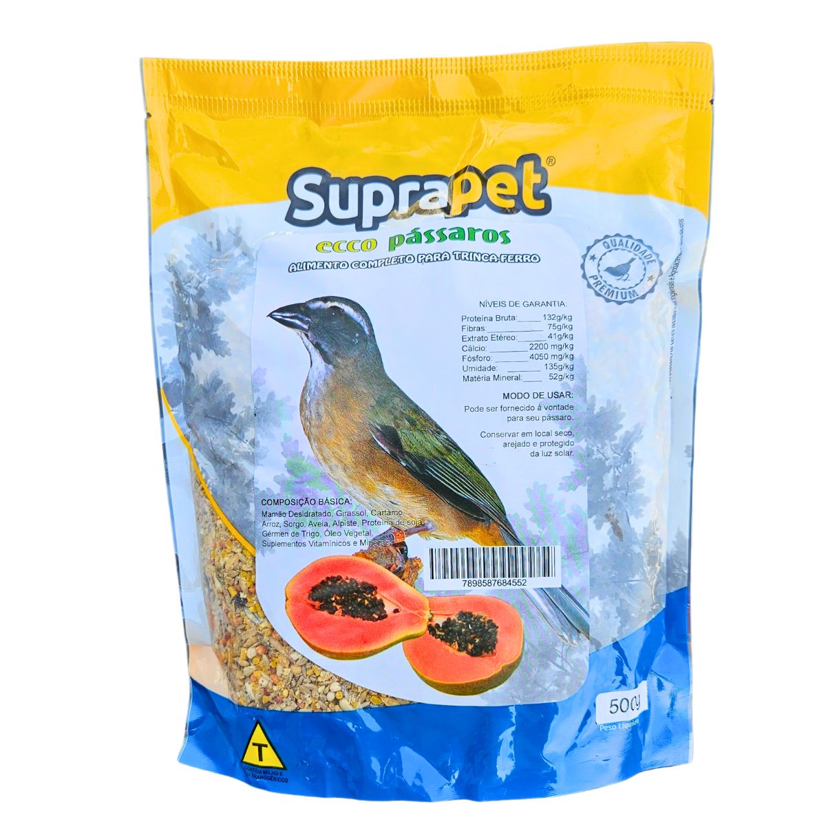 MISTURA ECCO TRINCA FERRO MAMÃO SUPRAPET - 500 g - Mistura de sementes, rações e insetos para Trinca Ferro e Pixarro. |